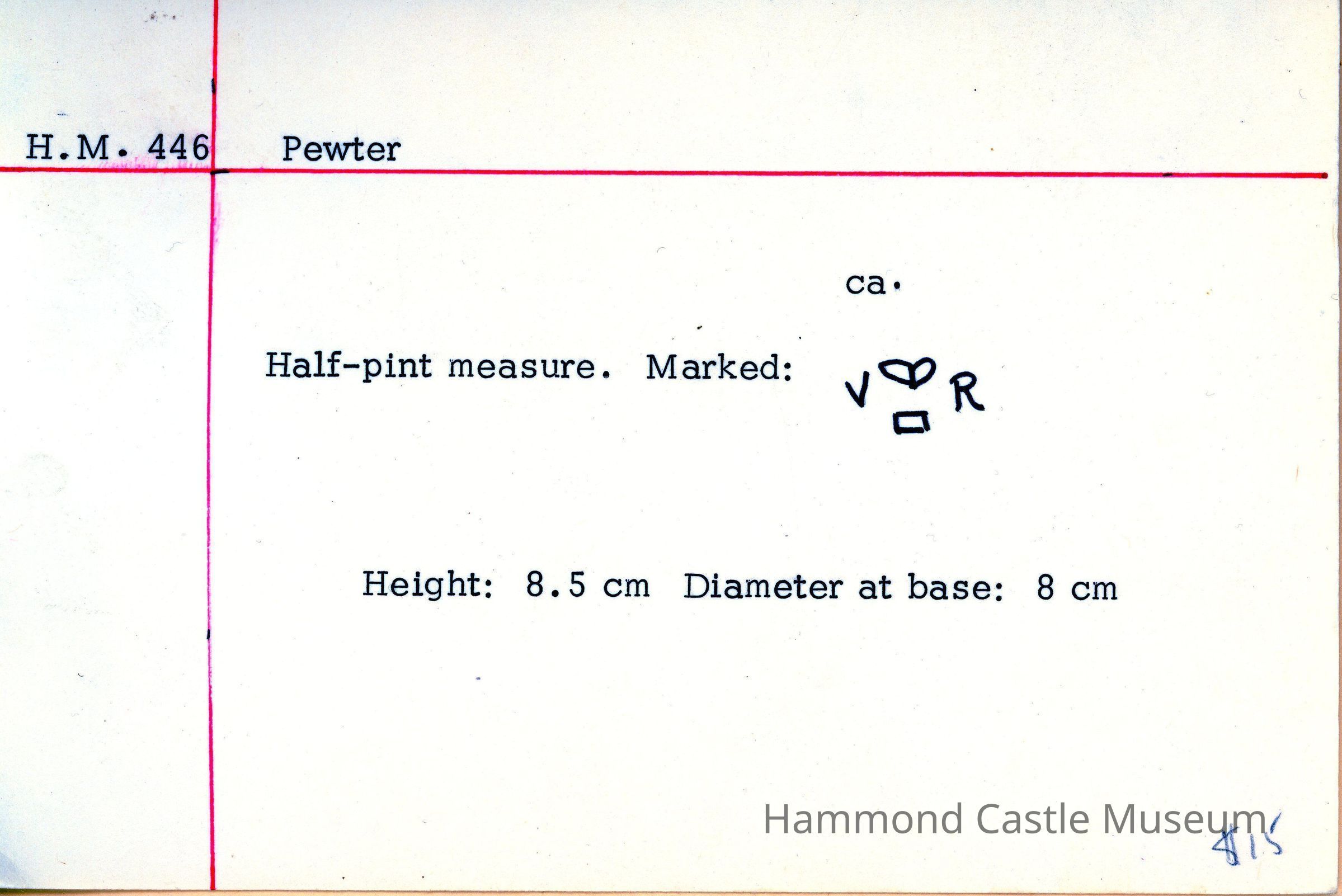 Half-pint measure. Marked: see card catalogue.