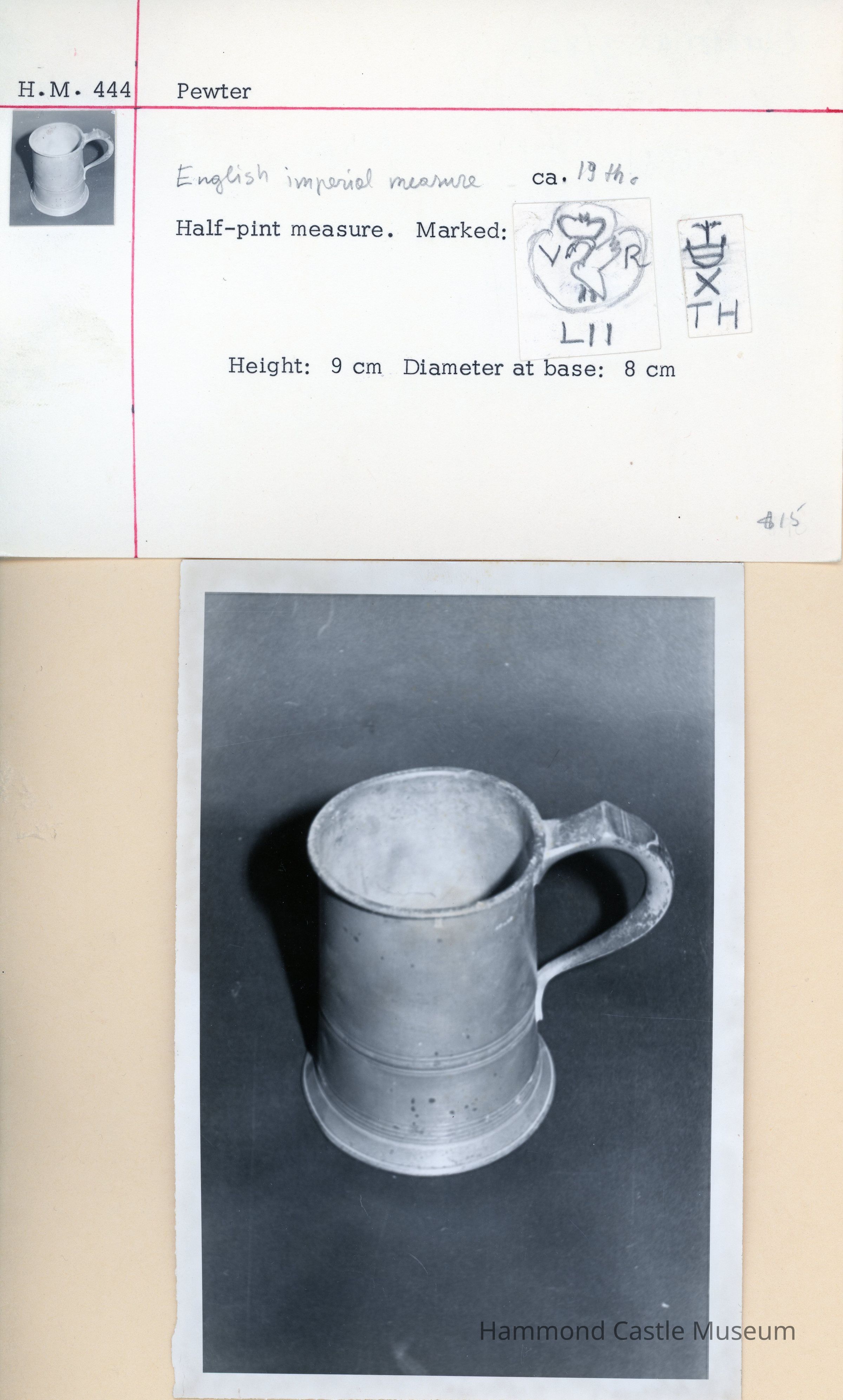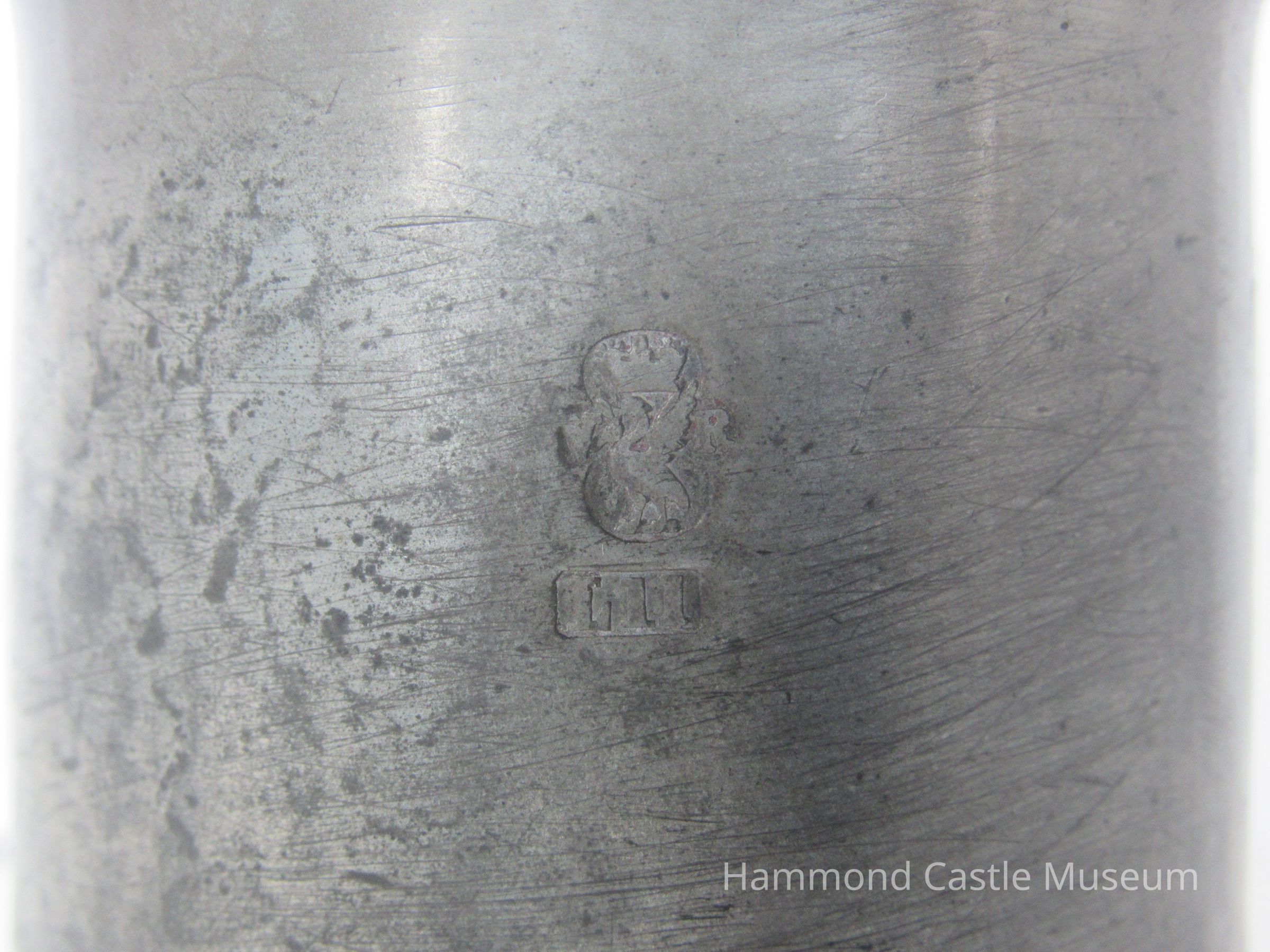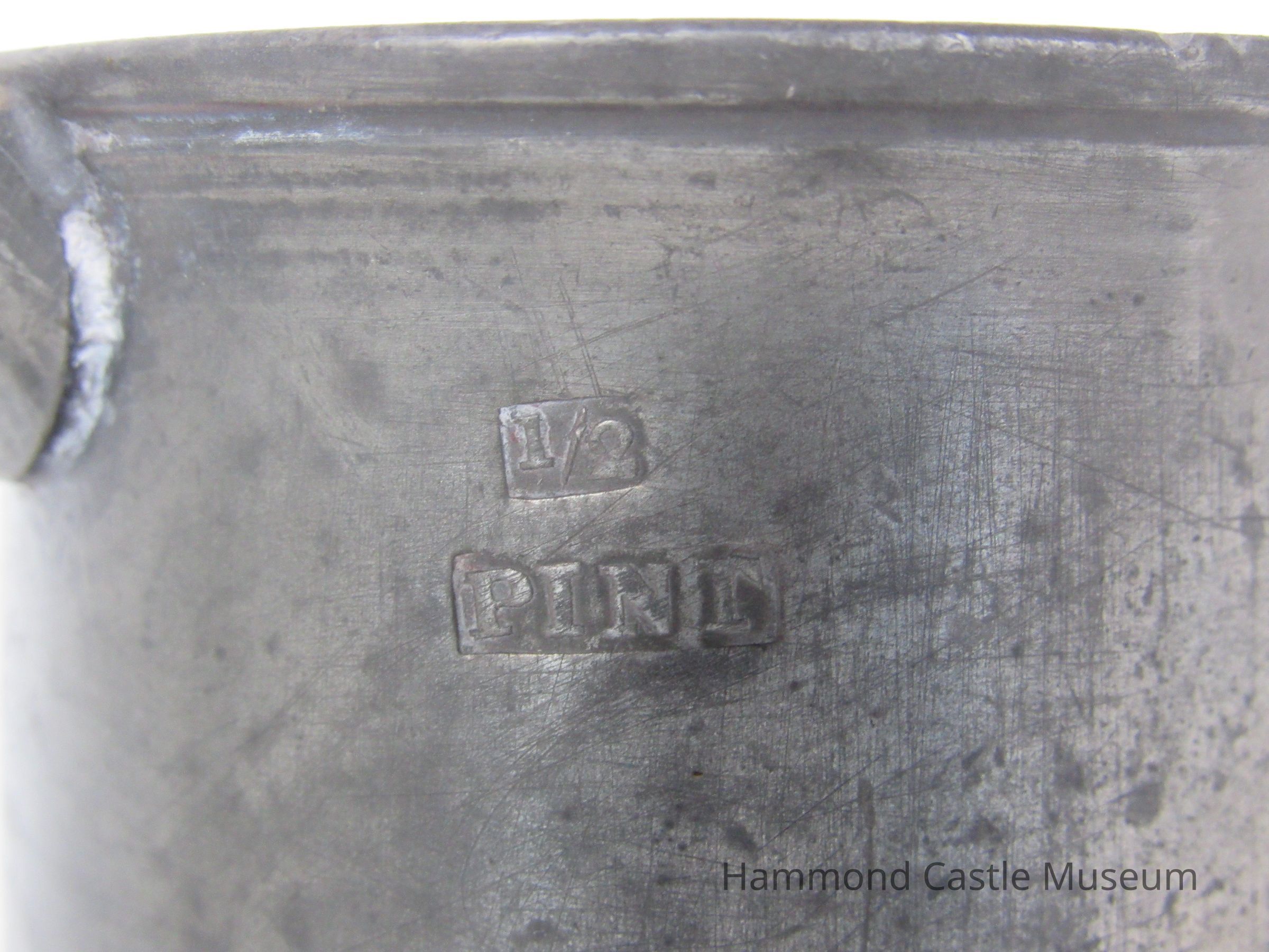 English Pewter flagon Imperial measure half-pint measure, single turning at bottom. See catalogue card for markings.