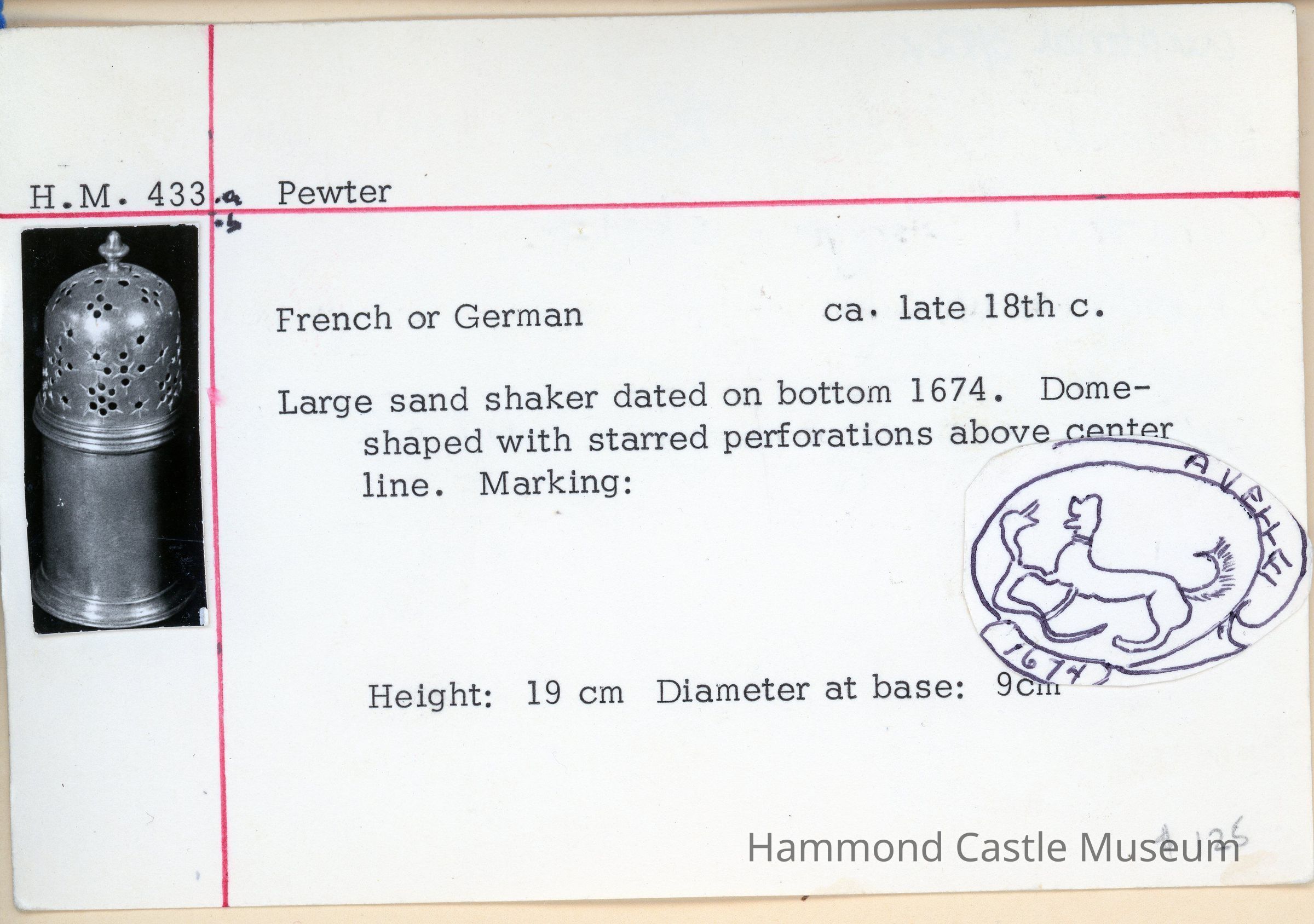 Pewter Sugar Shaker with AVETTE Marking, 17th c.
