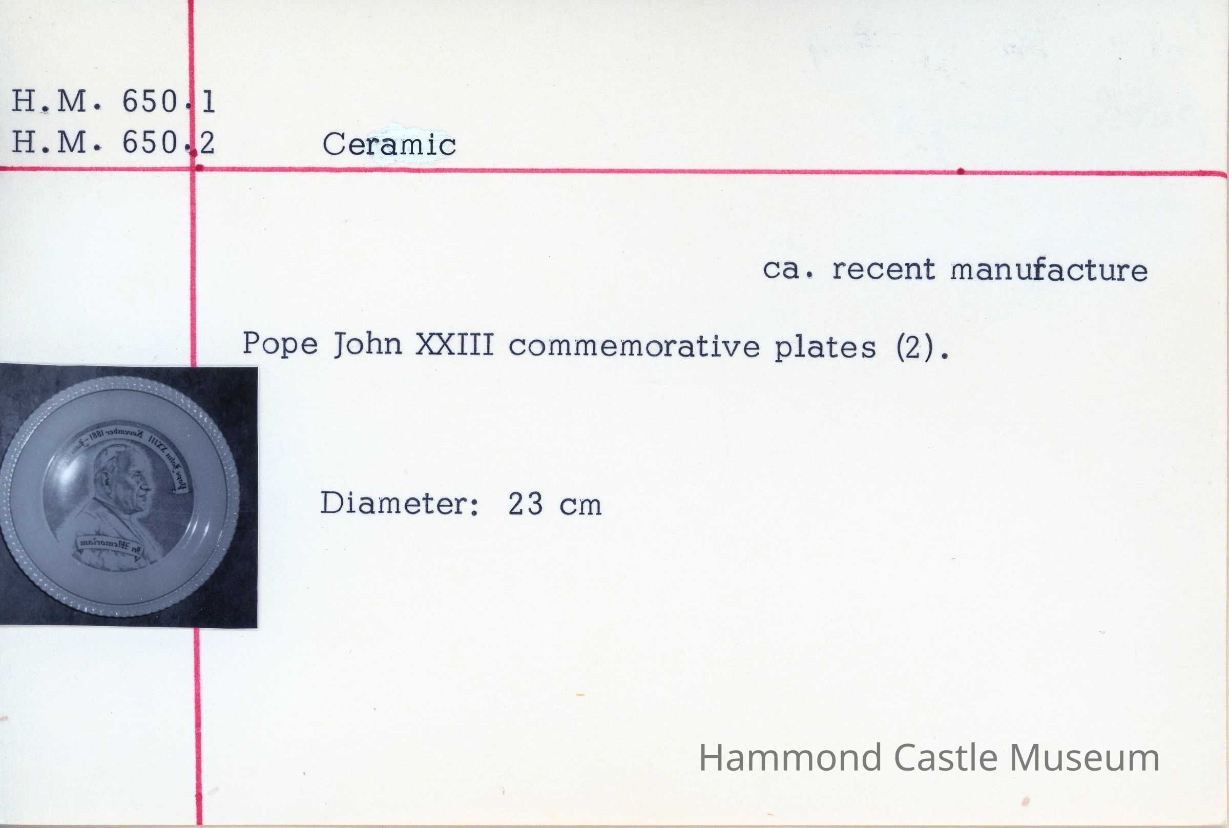 Pope John XXIII commeorative plate. Of recent manufacture (presumably between 1958 and 1963)