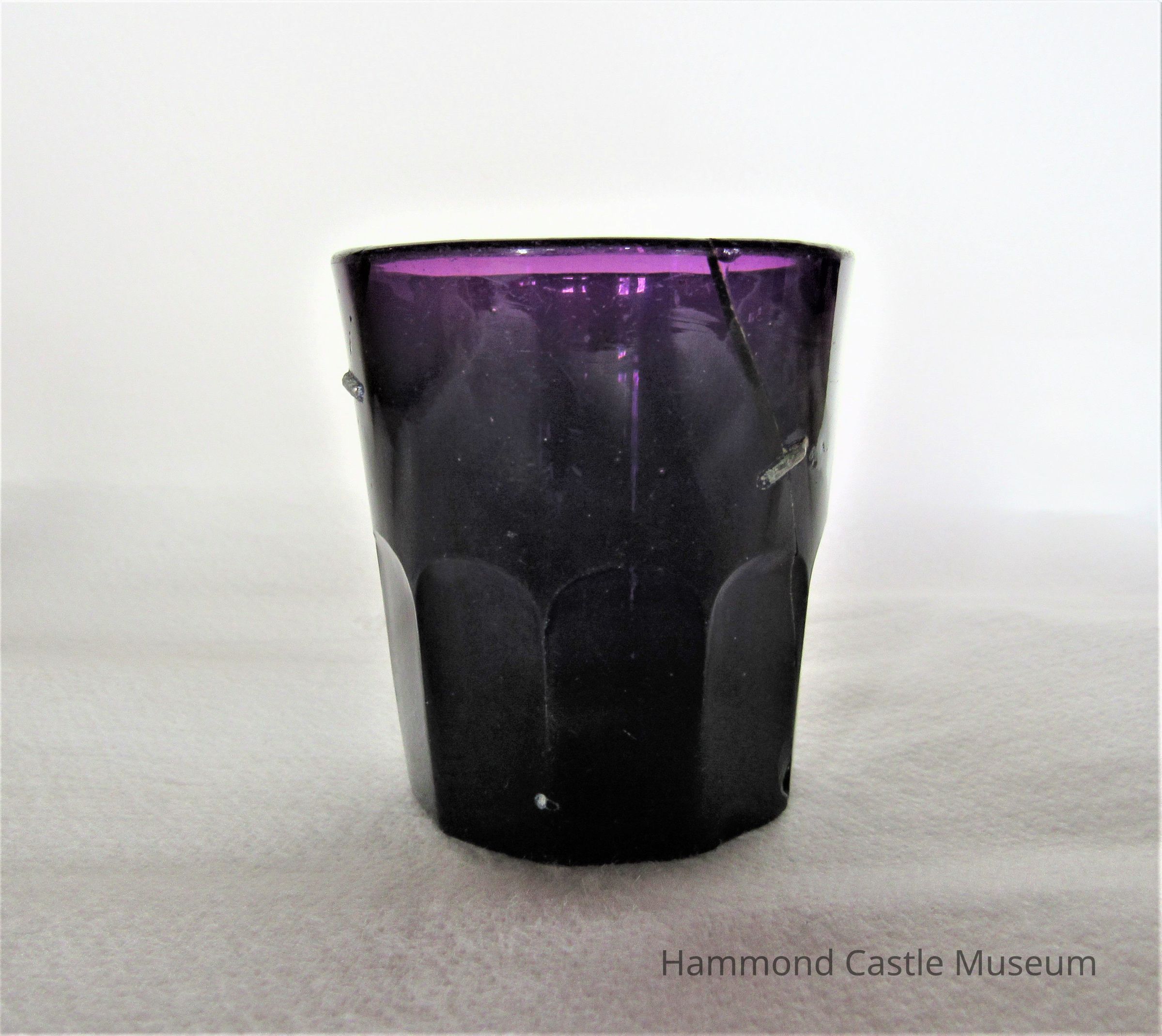 Set of 3 purple dram glasses Has been repaired.