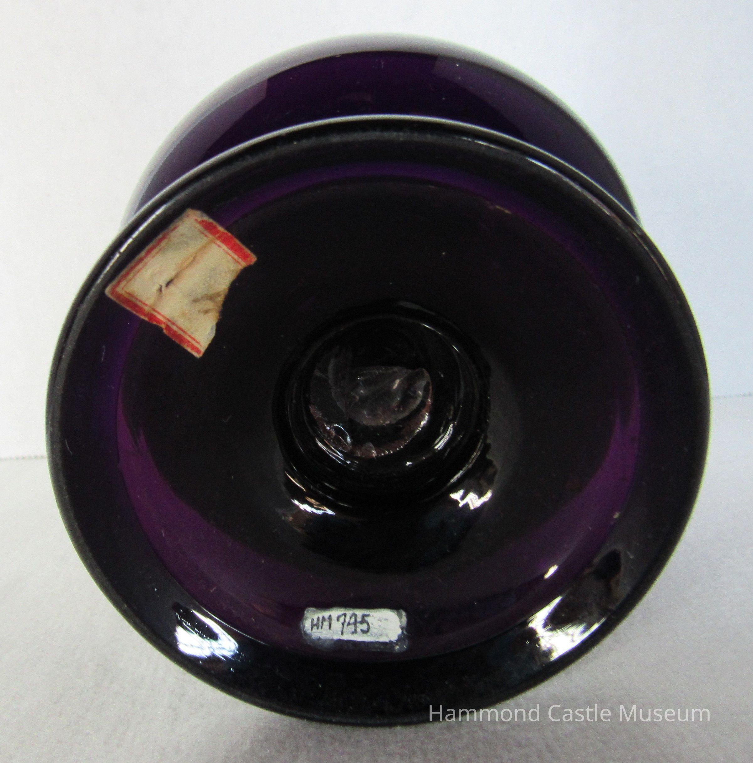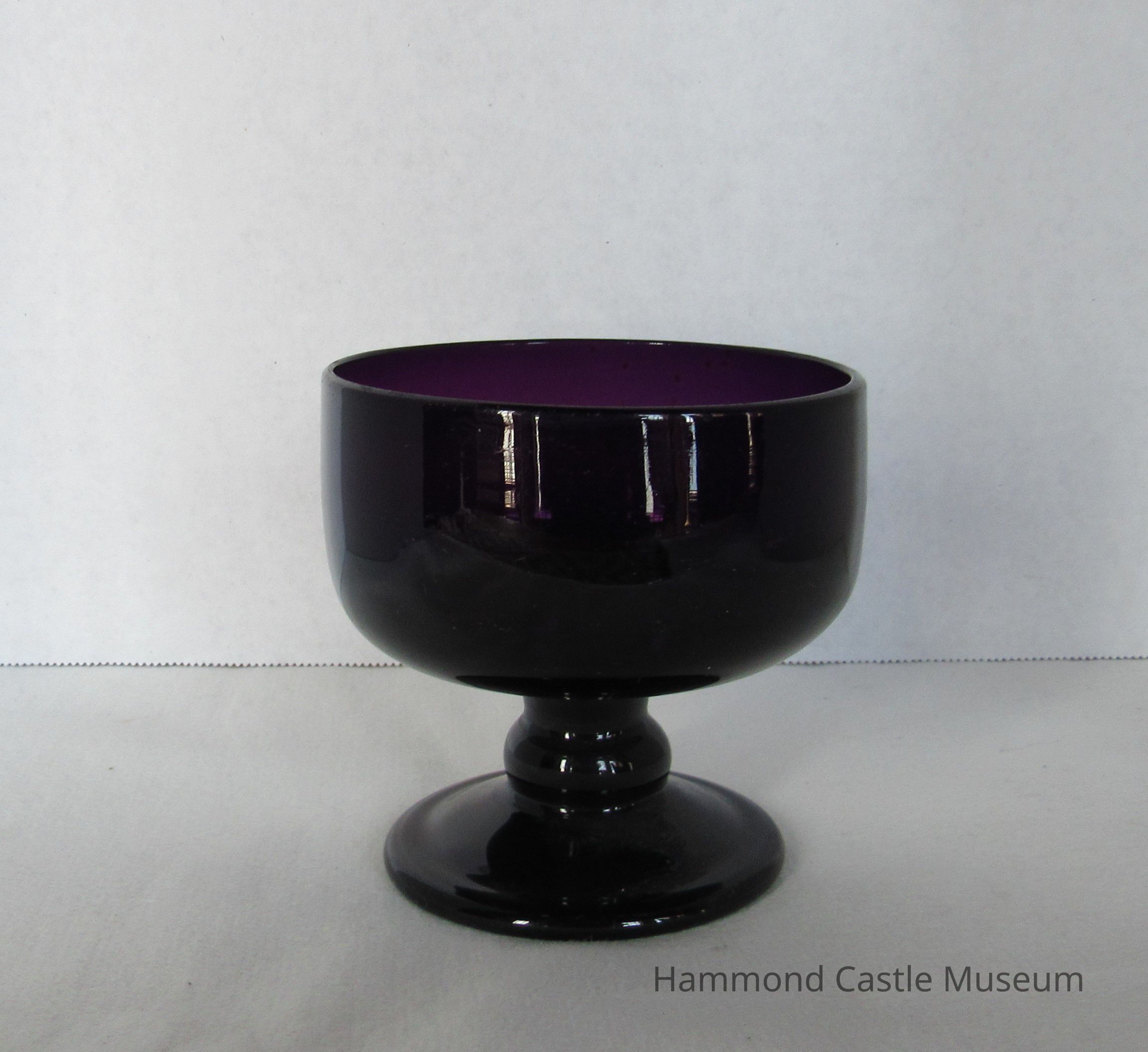 Dish with pedestal base. Deep purple glass. H:10cm D 10.5cm