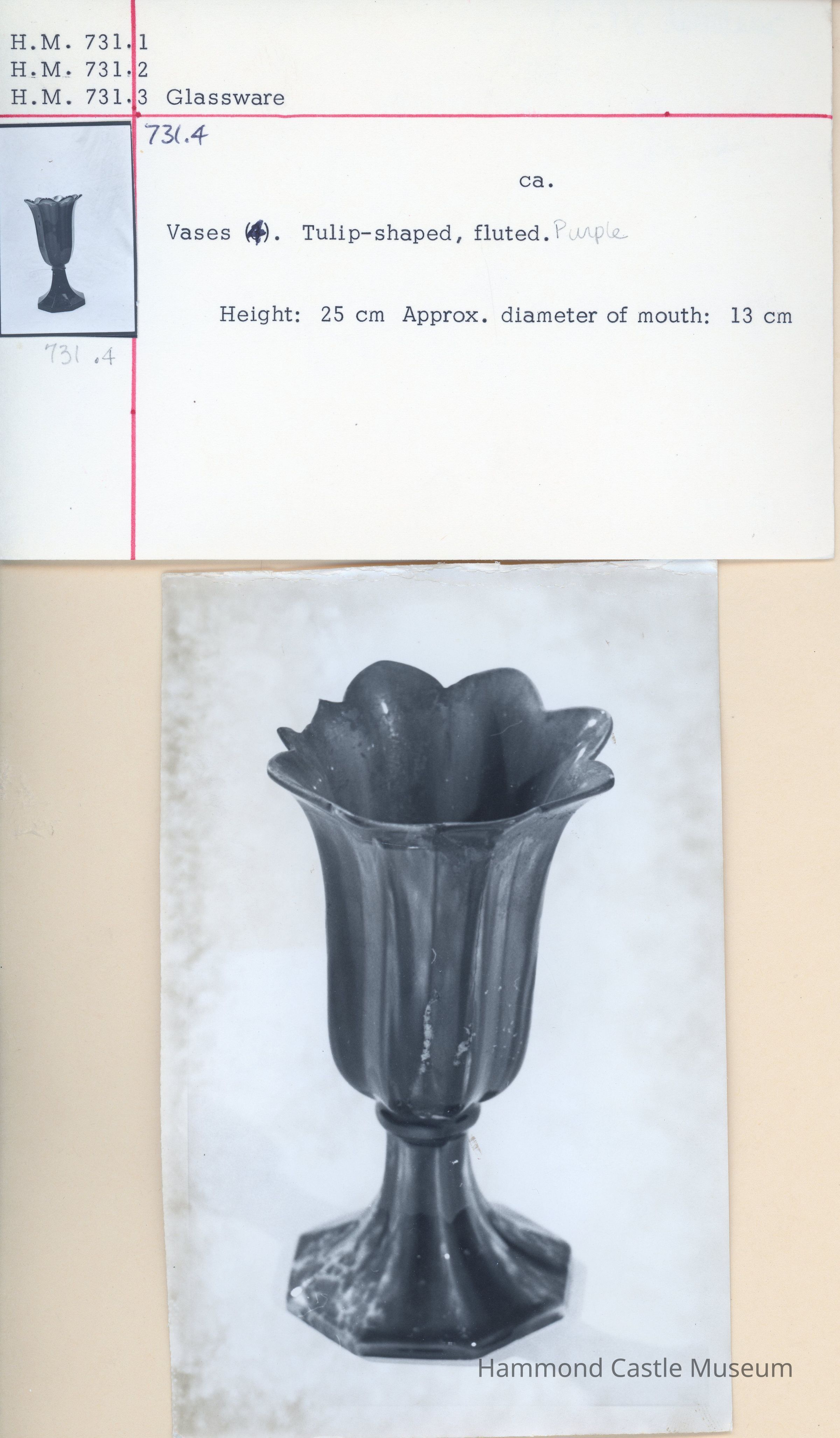 Set of 4 vases. Tulip-shaped, fluted. Purple.