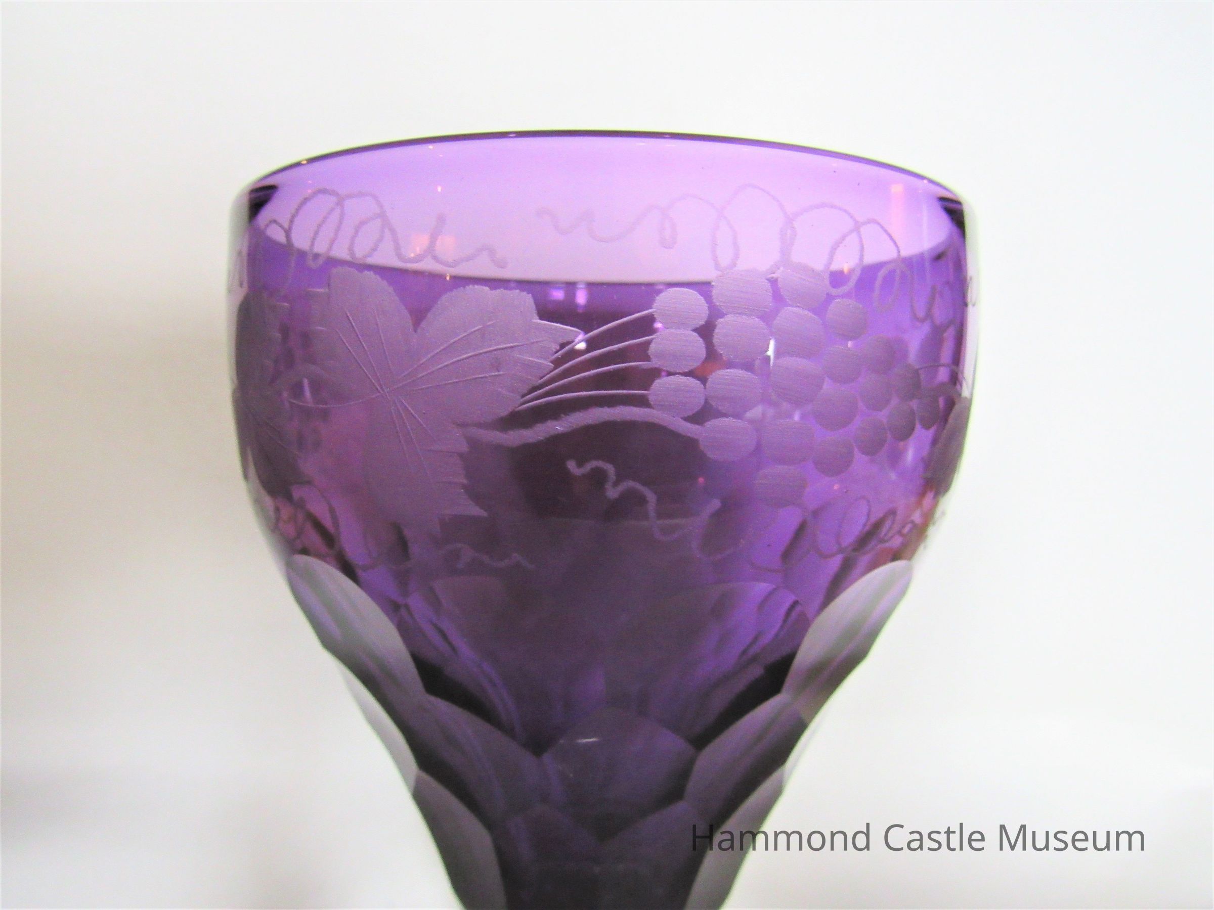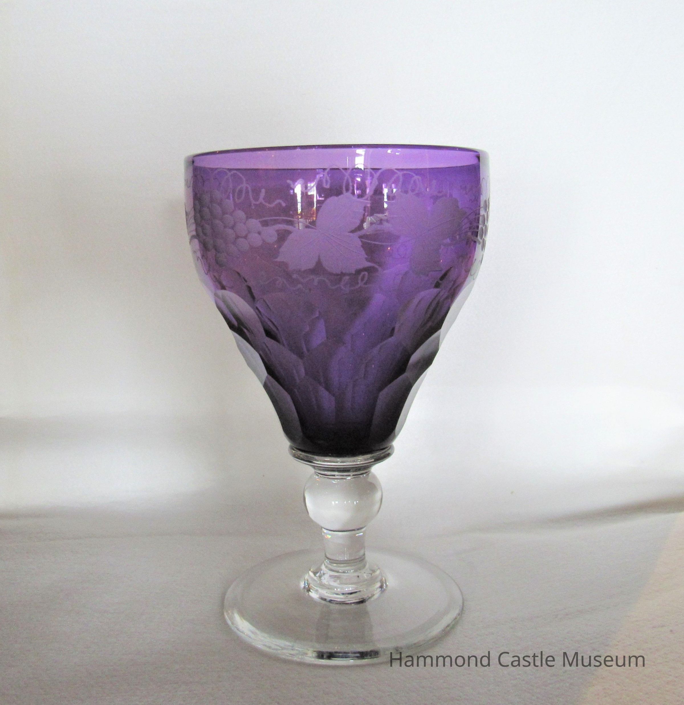 Purple Goblet with Clear Base with Etched Grape Leaves