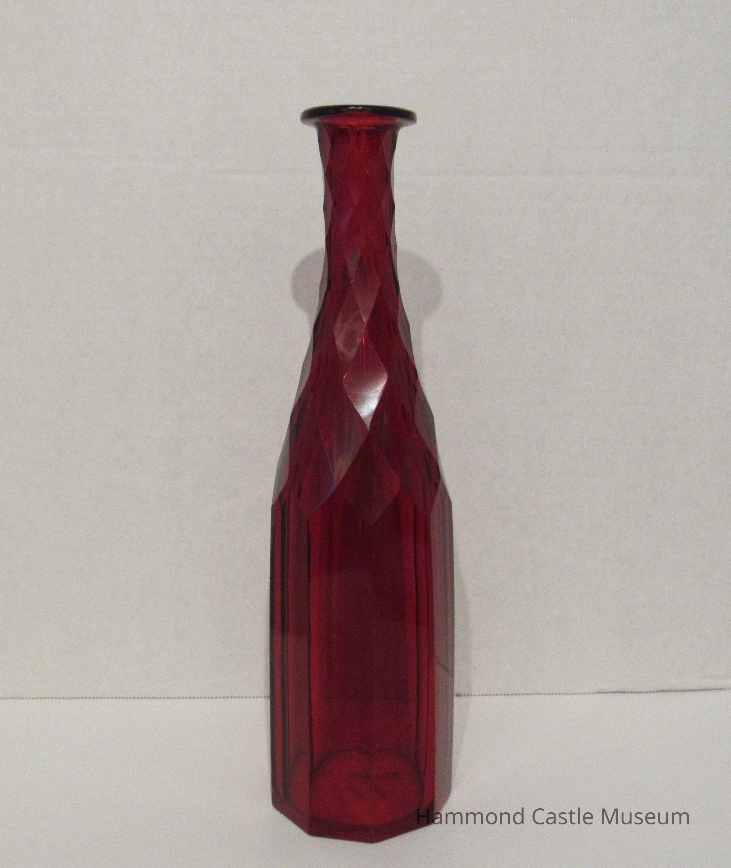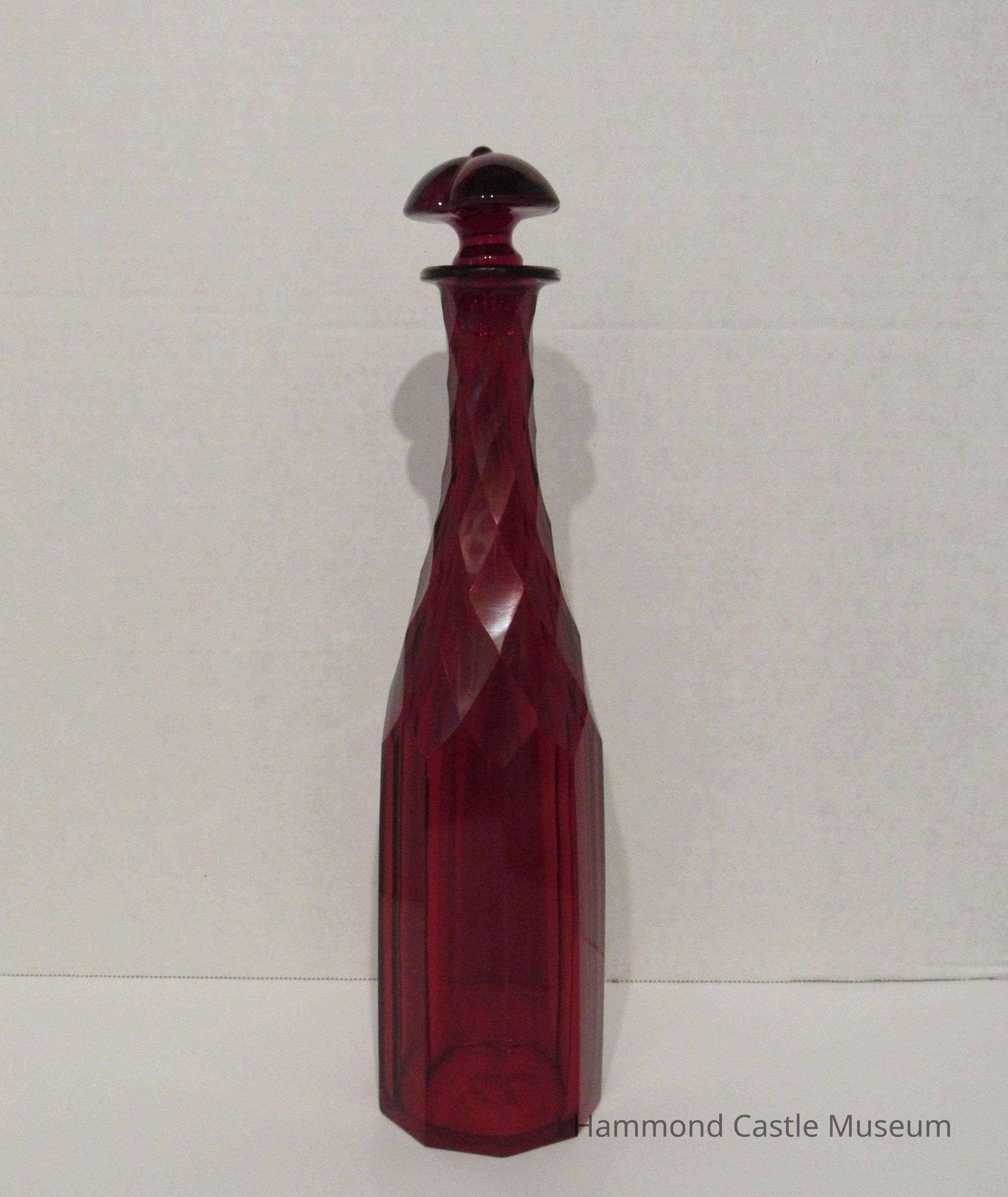 Red Glass Decanter & Stopper with Flowers