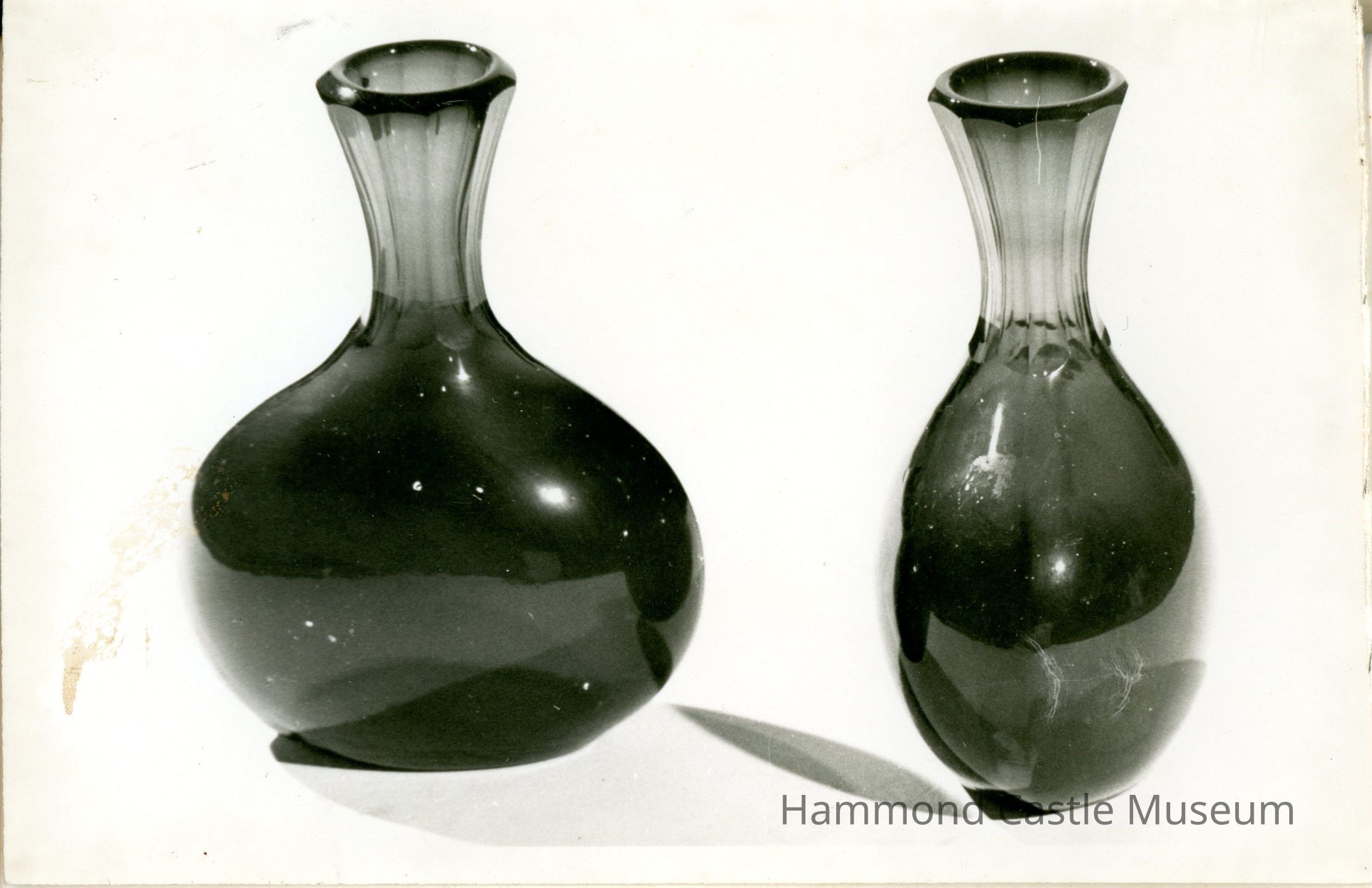 Pair of red glass vases circular bottoms with ridged necks 1965 Probate Inventory - Sitting Room