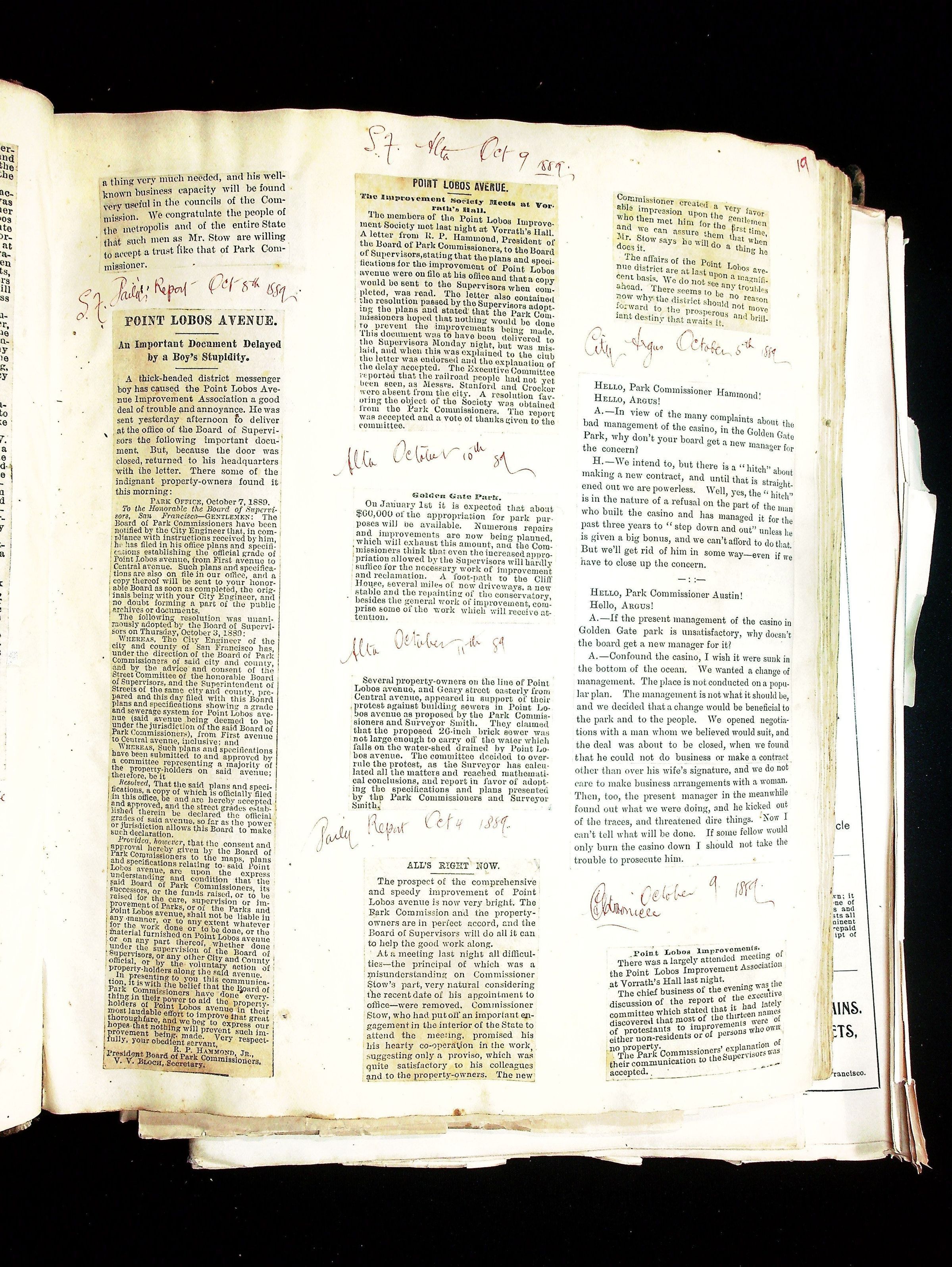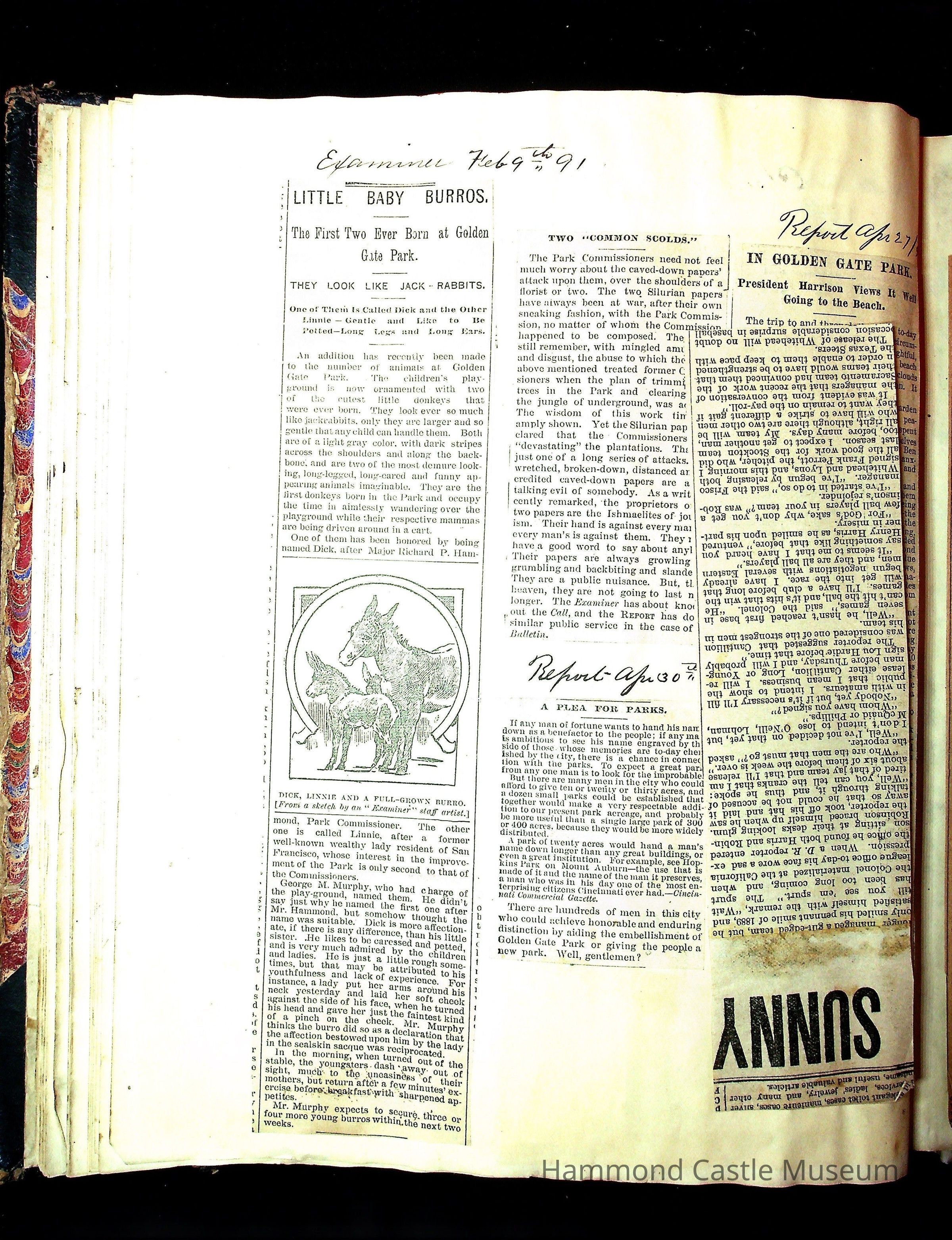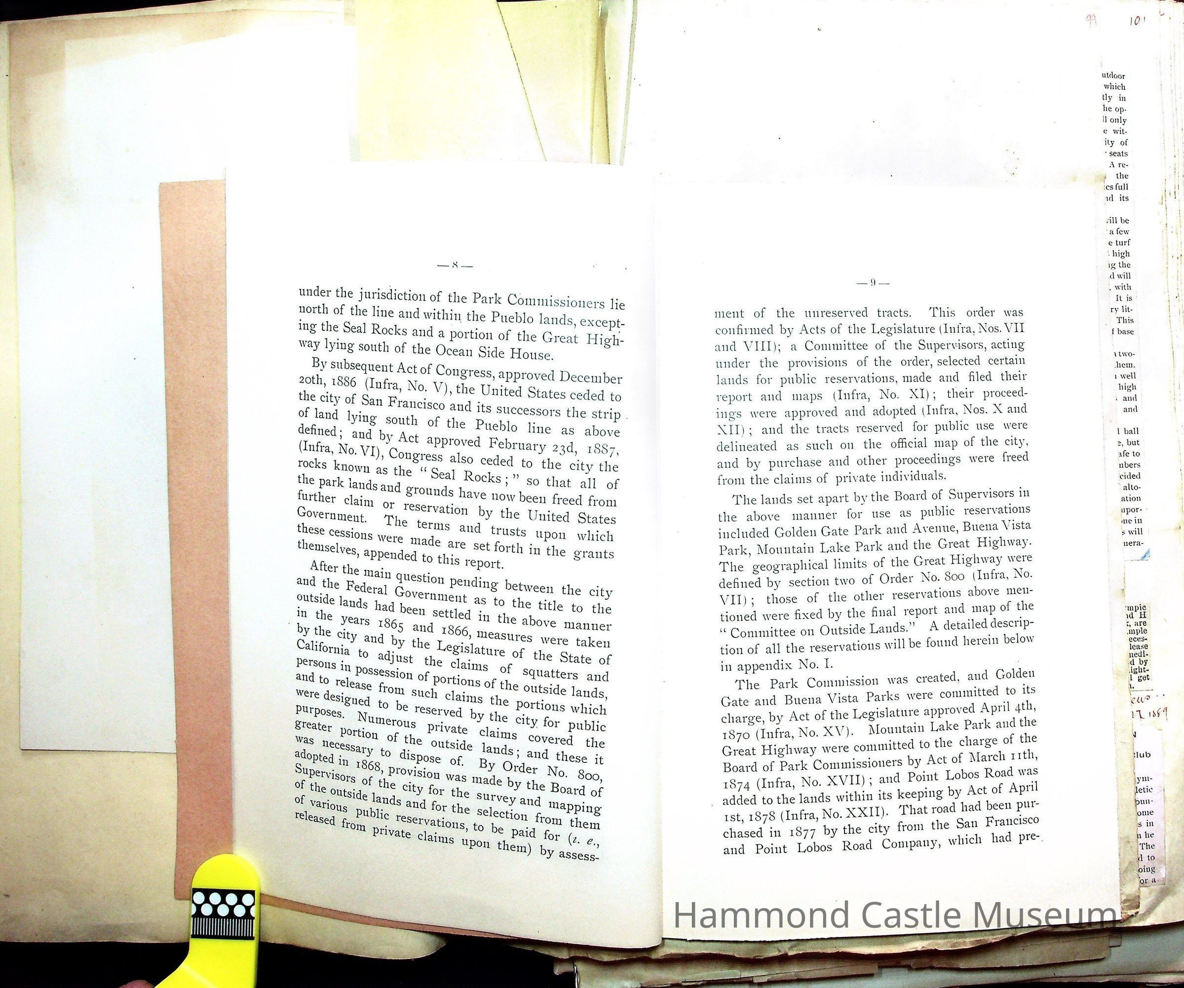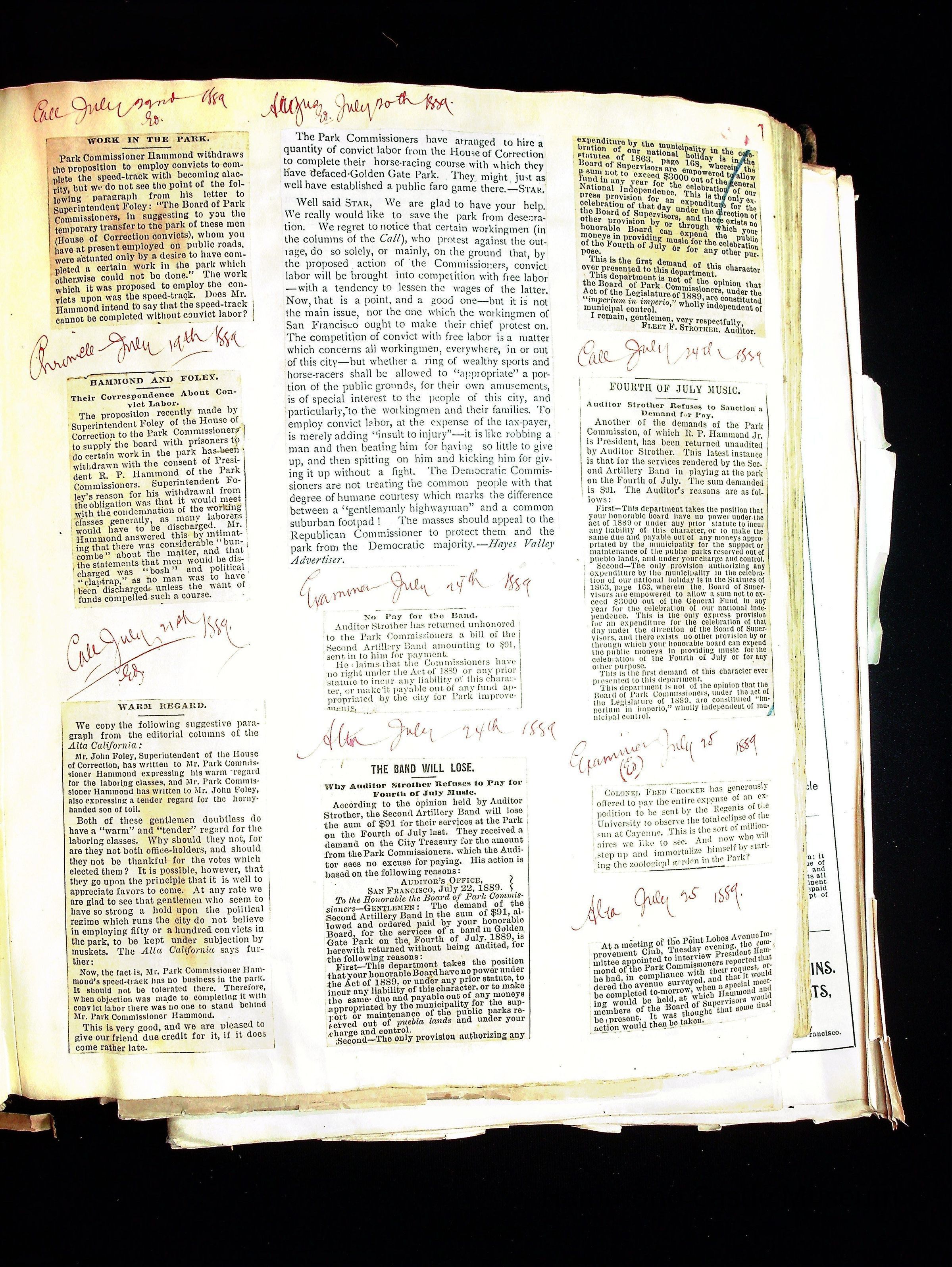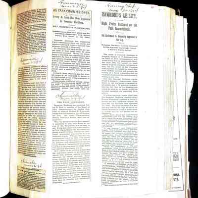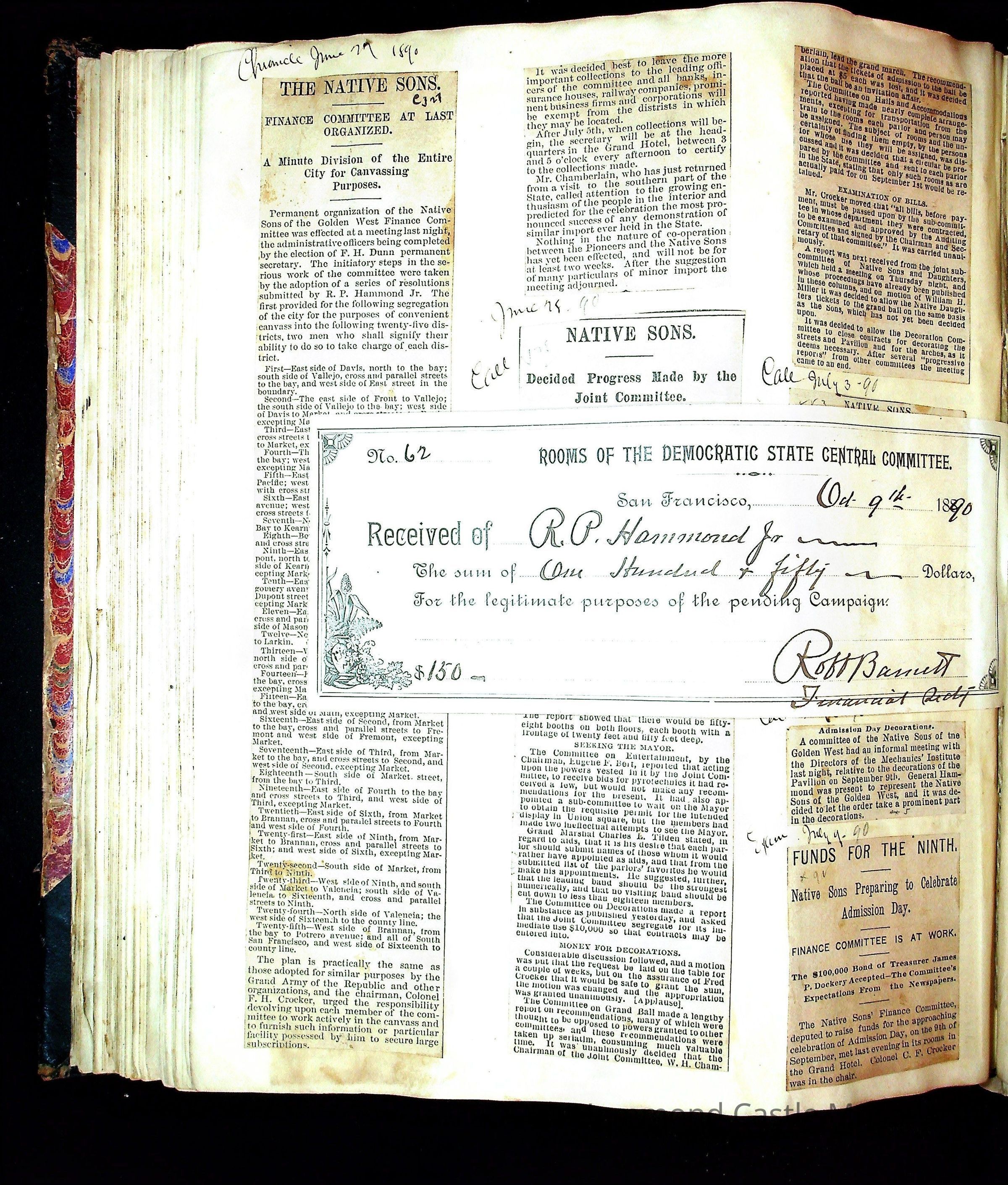 1889-1896 scrapbook of newspaper articles & paper ephemera from Richard Pindle Hammond Jr - Golden Gate Park CommissionerGeneral Notes