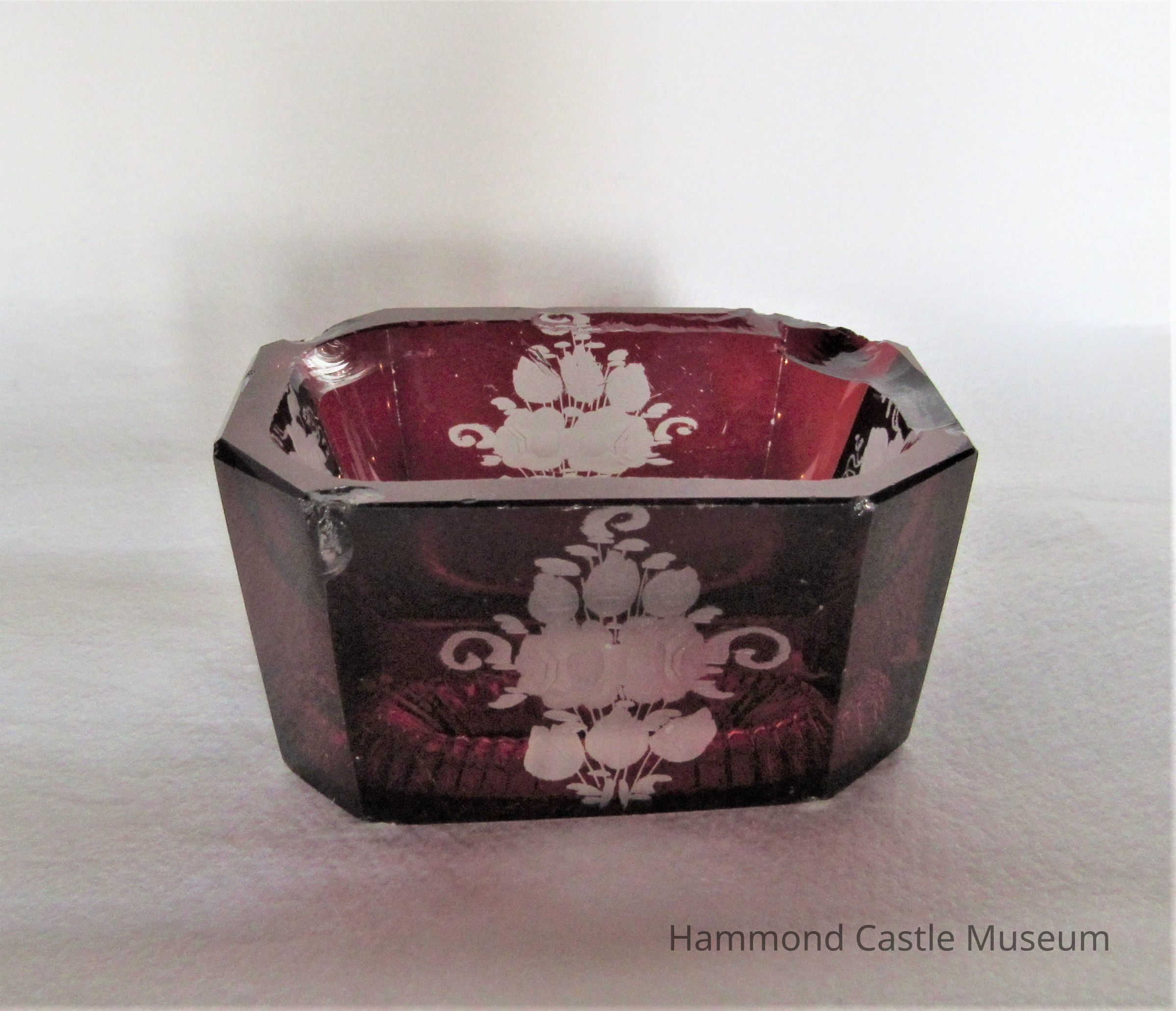 Ruby Etched Glass Salt Cellar