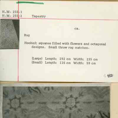 Hooked rug; squares filled with flowers and octagonal designs #1 - Large #2 - Small