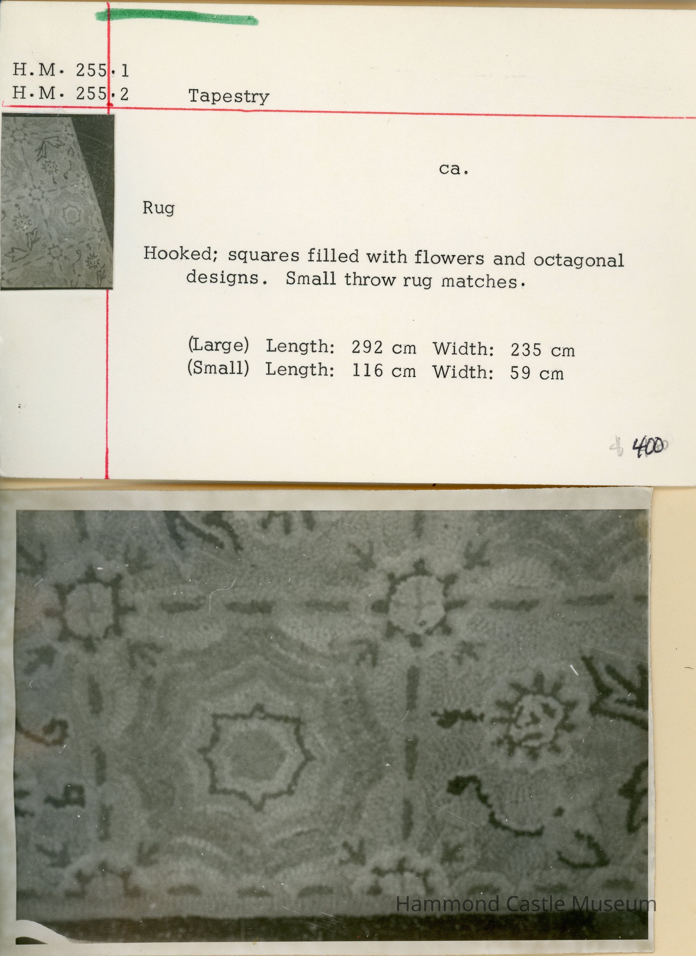Hooked rug; squares filled with flowers and octagonal designs #1 - Large #2 - Small