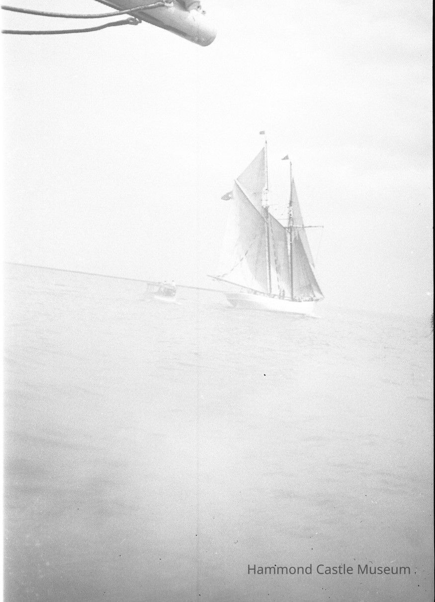 Negative of schooner from deck of Odysseus