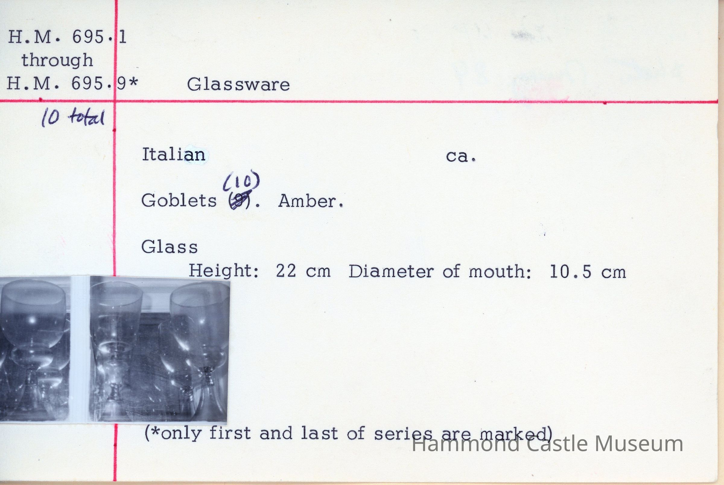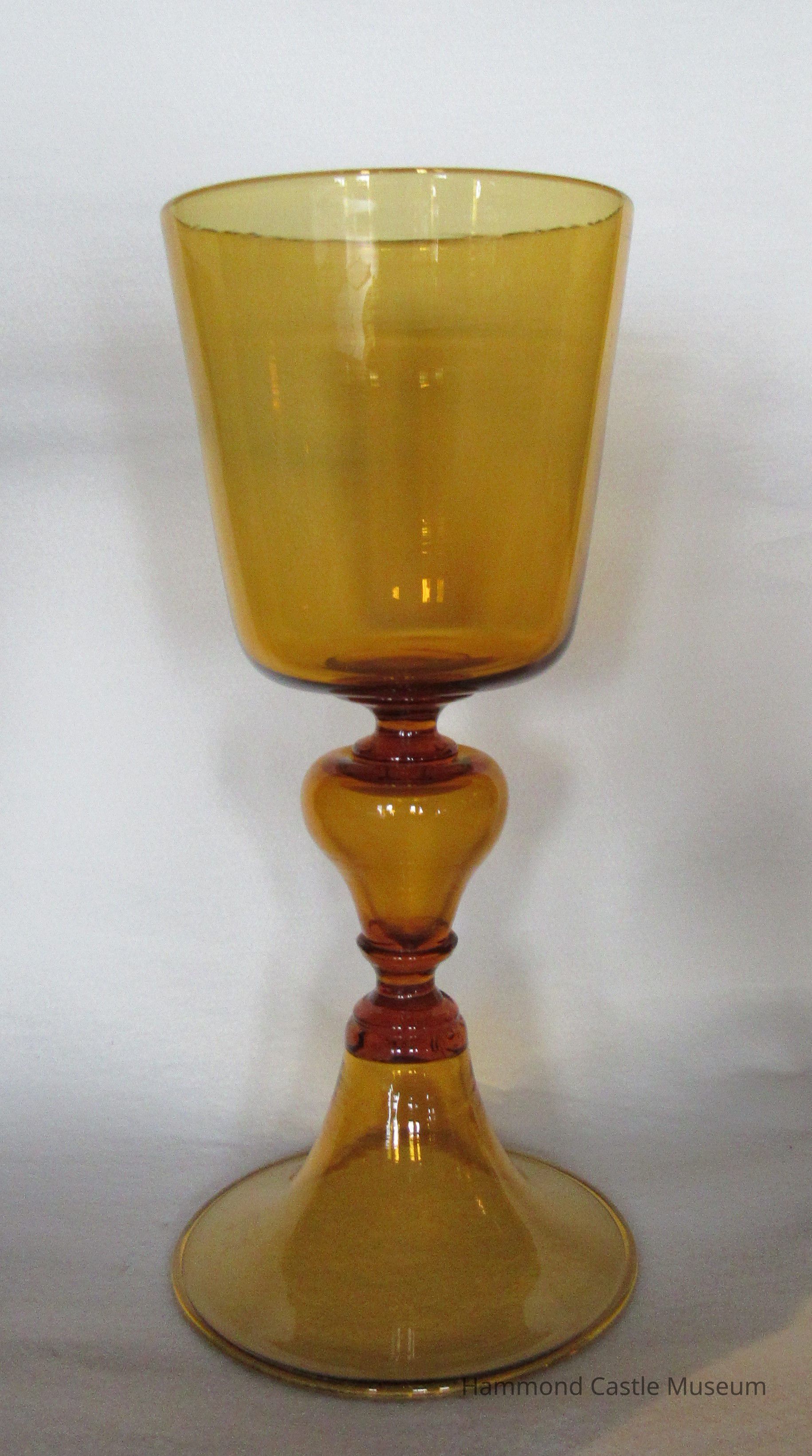 Set of 10 Murano Amber Goblets Tapered cylinder shaped basin Purchased from Orsini Palace sale, Venice, 1923