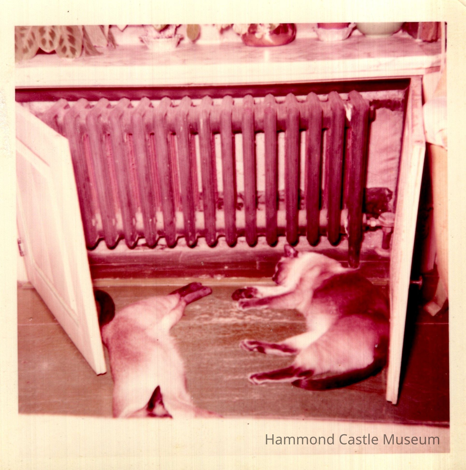 Photo of Siamese cats in front of radiator in Irene's bedroom