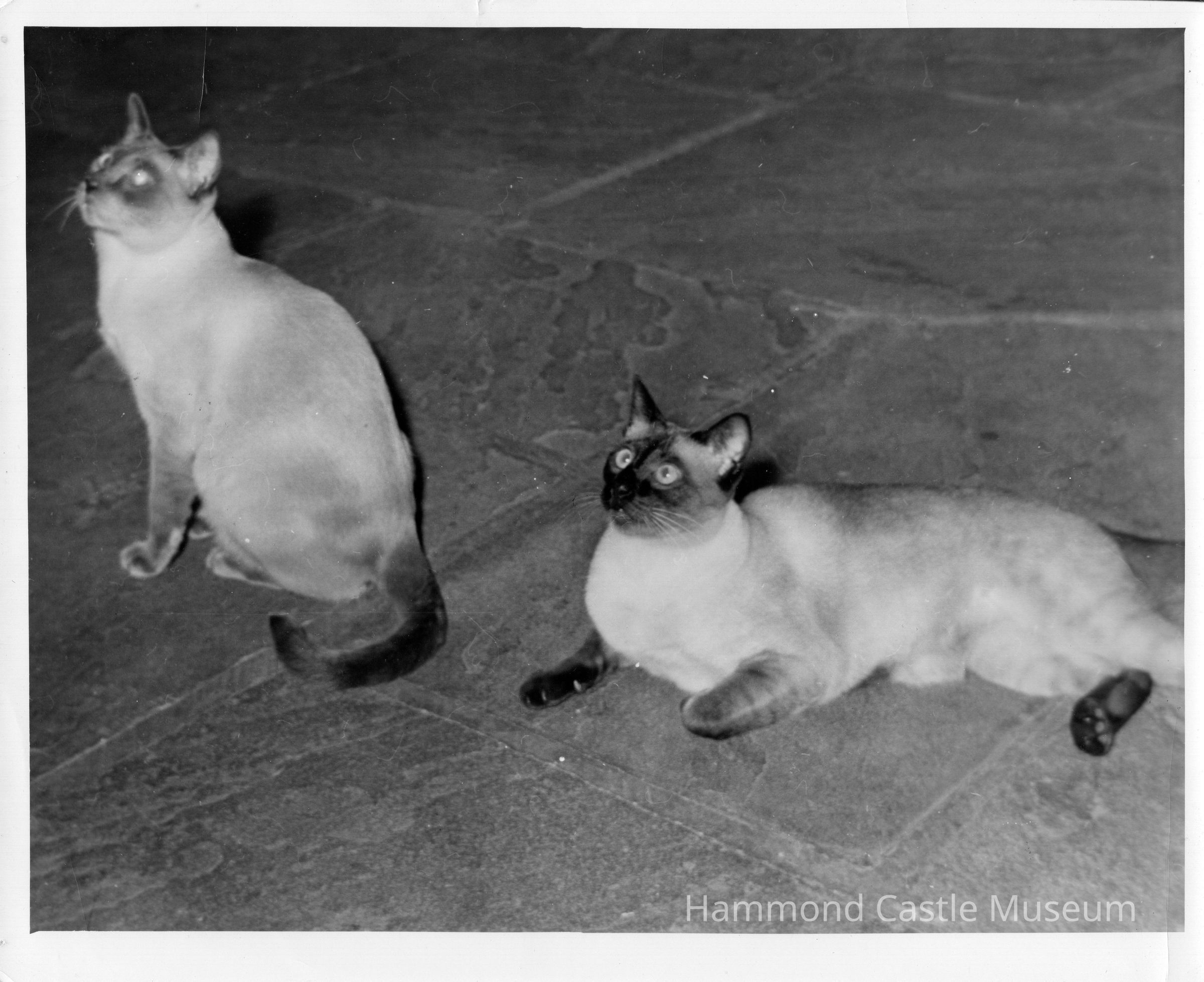 Siamese cats, Tigh & Boo, in Great Hall (Marilyn Silveira photo)