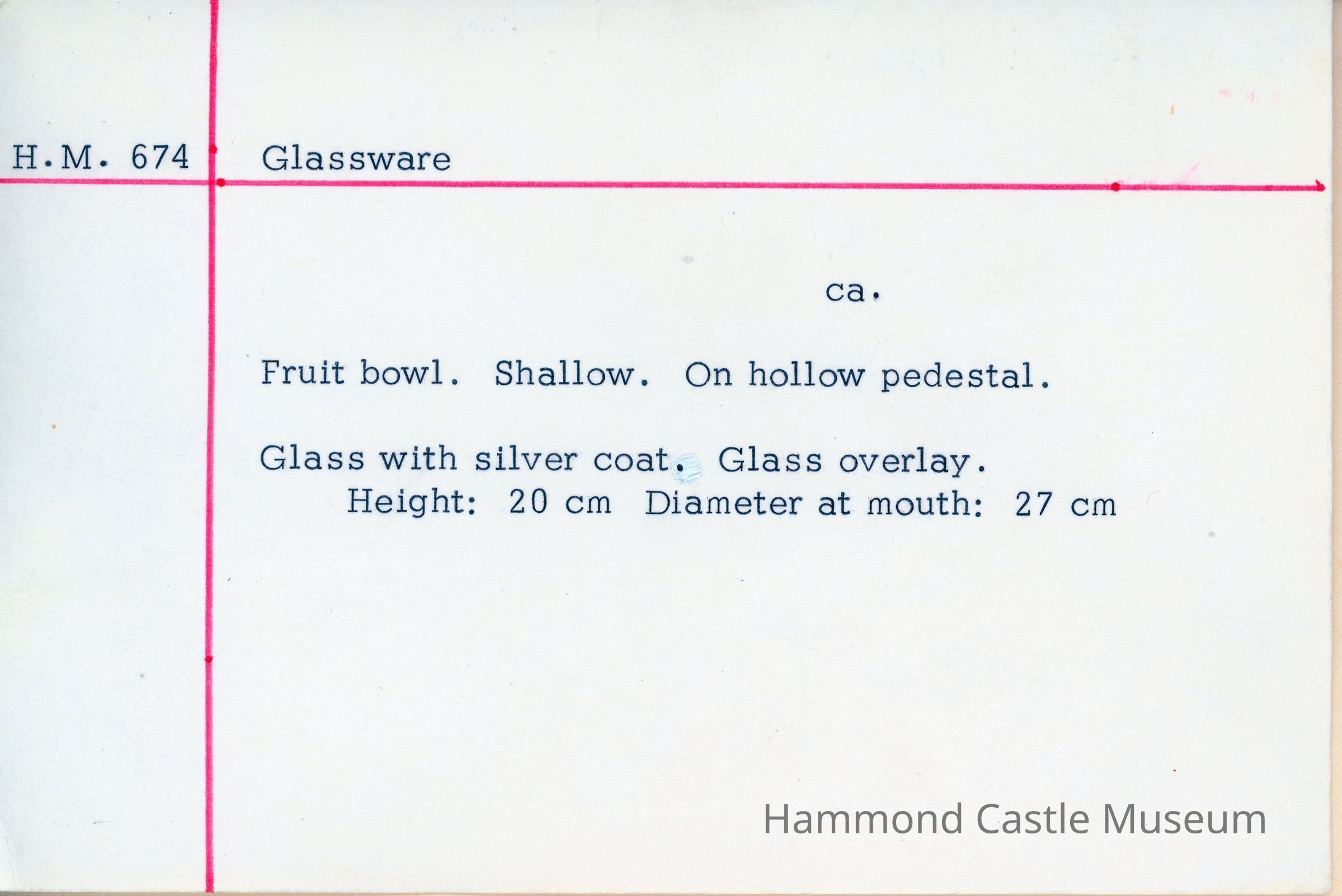 Fruit bowl. Shallow. On hollow pedestal. Glass with silver coat. Glass overlay.
