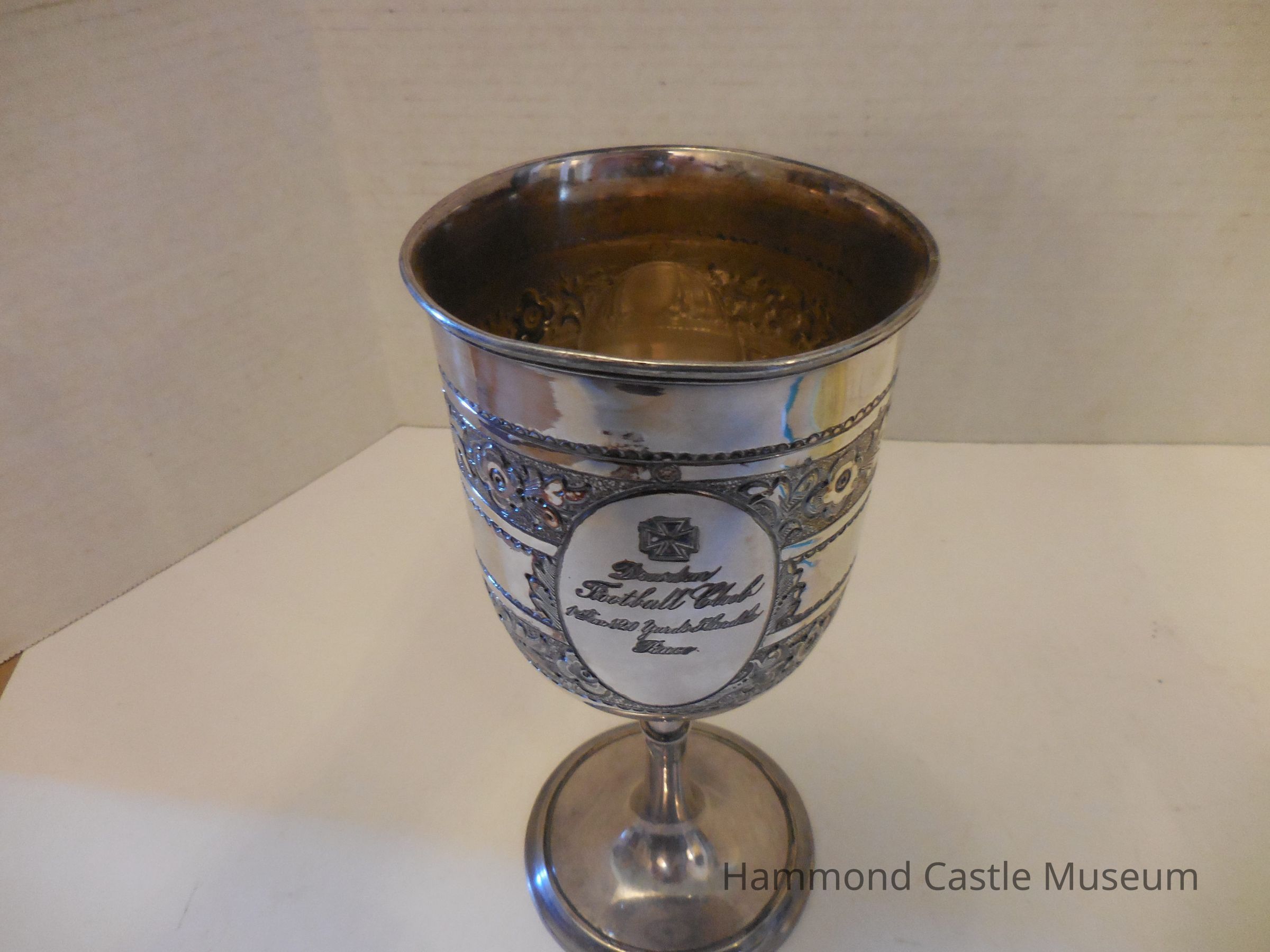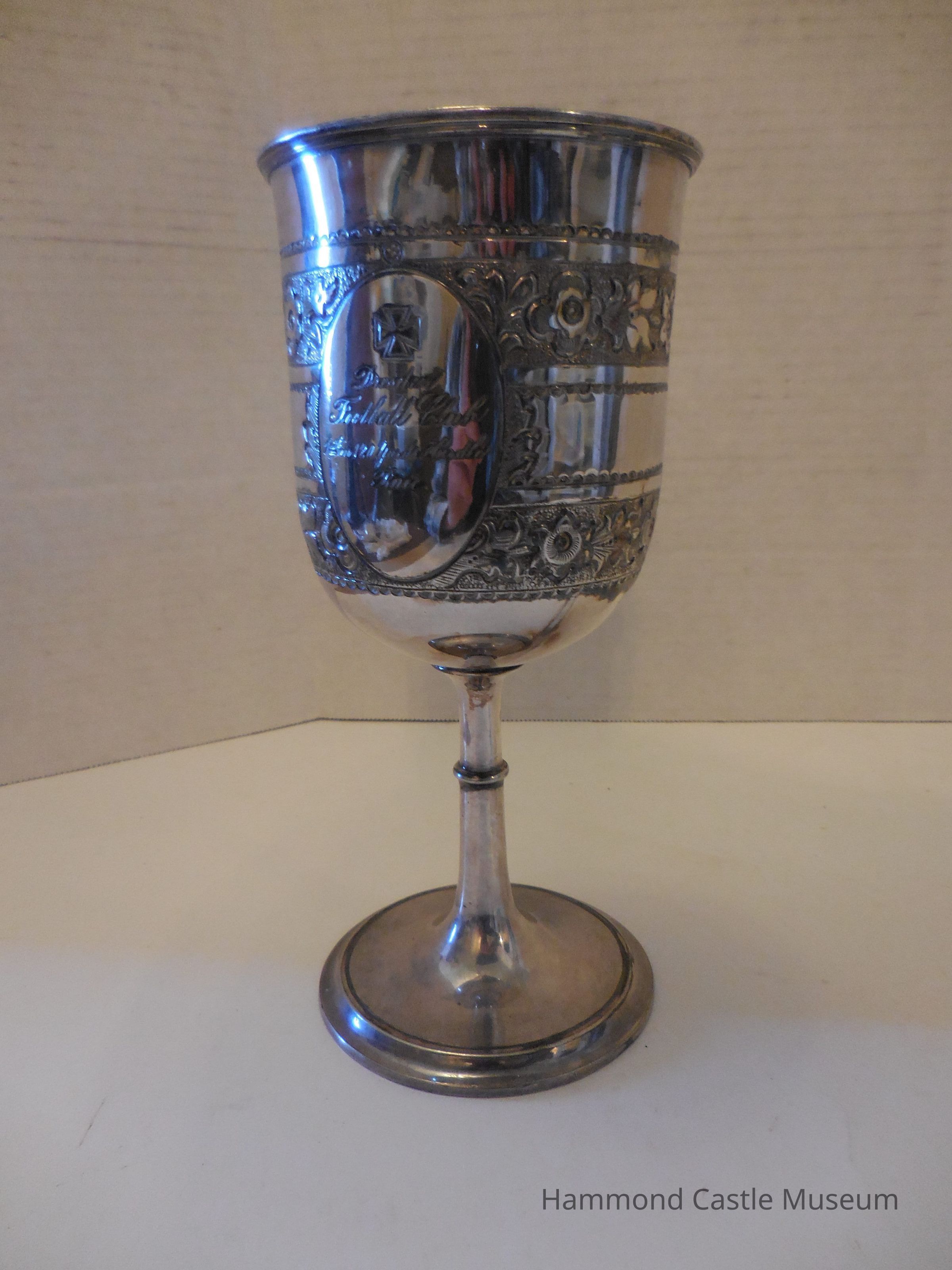 Silver trophy given to John Hays Hammond Sr. at the Dresden Football Club after winning 1st place in the 120 Yards Hurdle Race in Dresden, Germany.