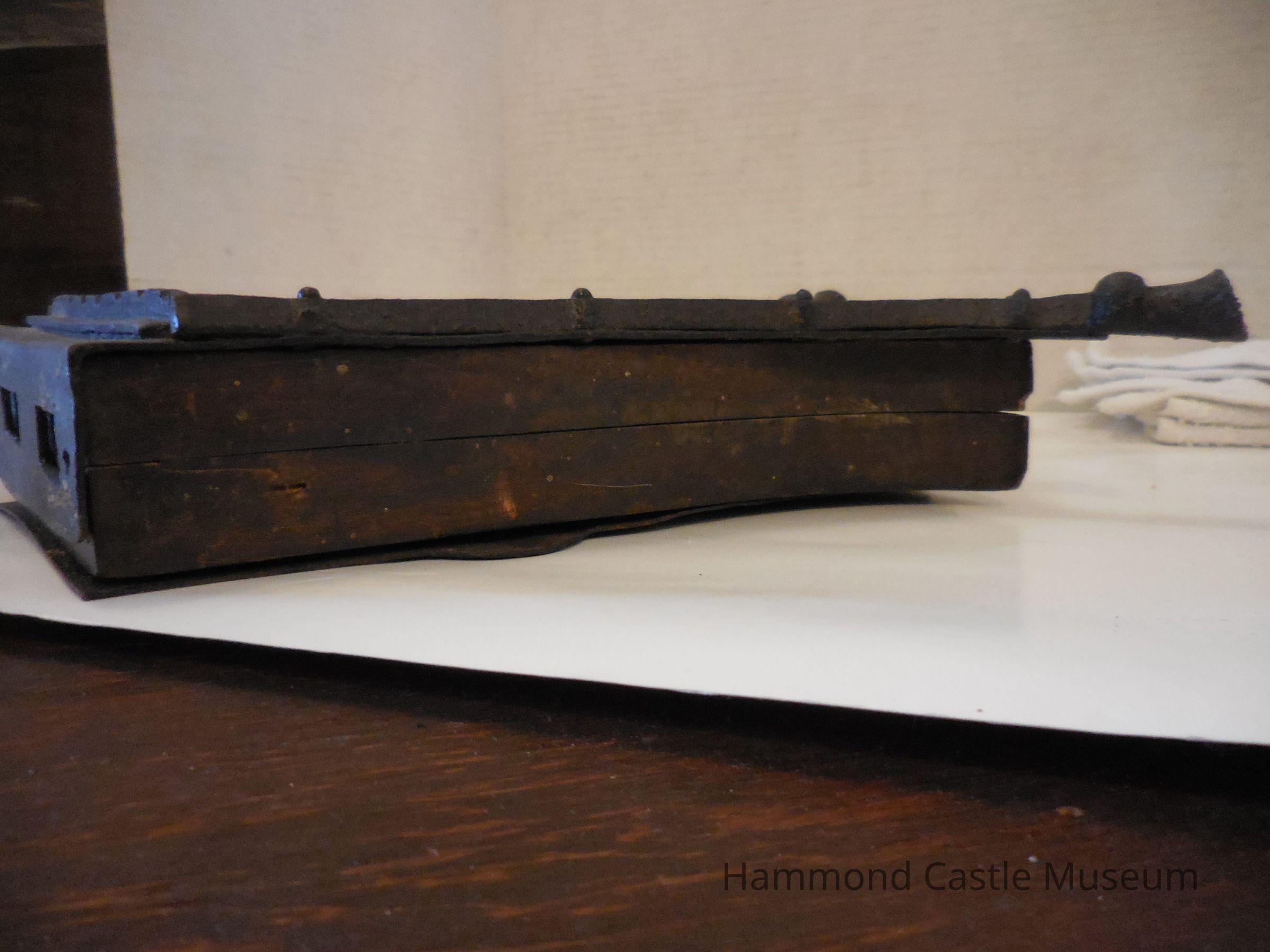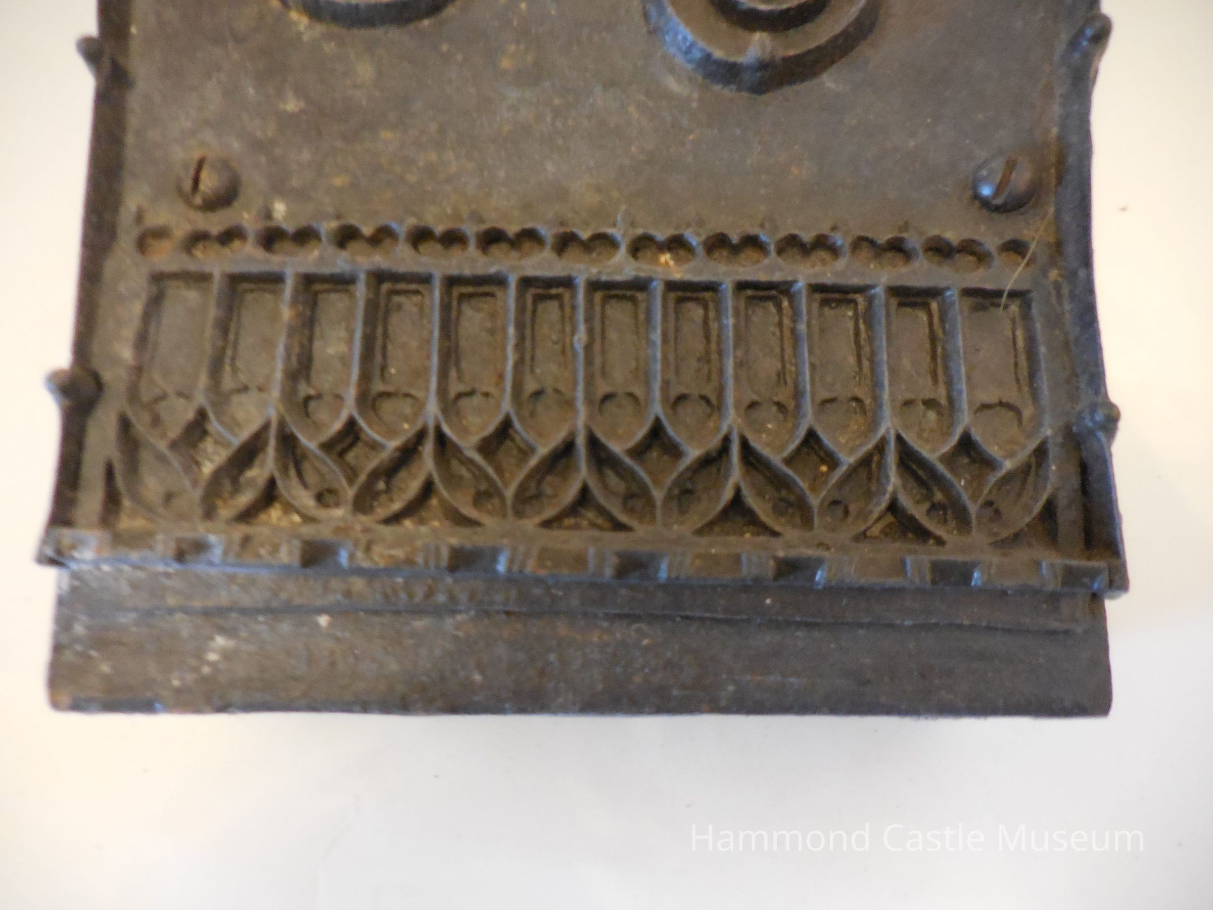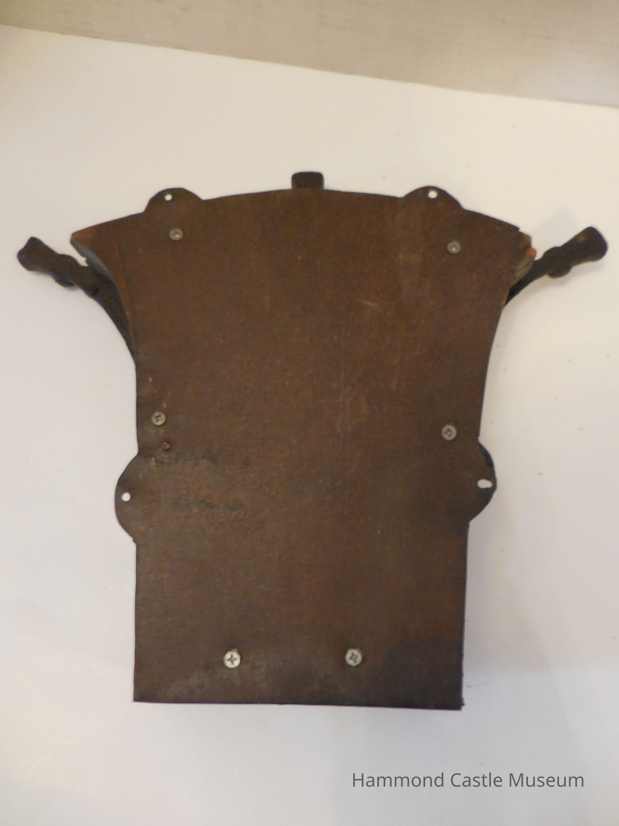 Iron frontispiece, bottom and backing, but middle is made of wood.
