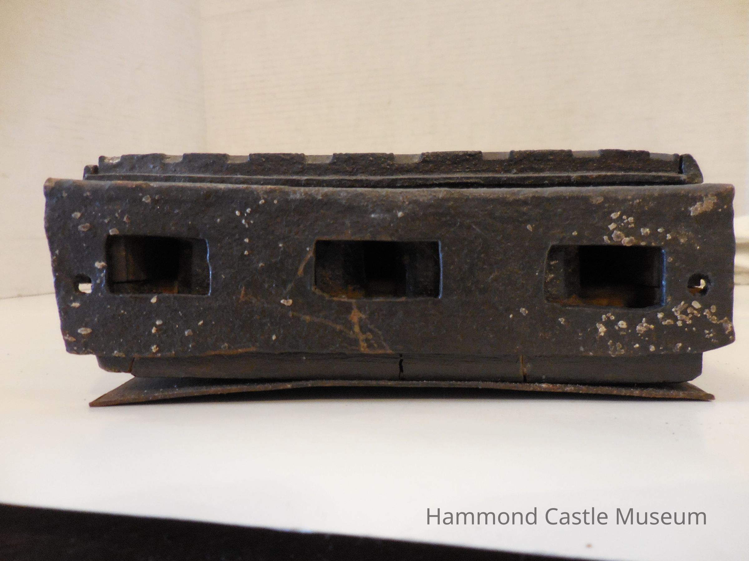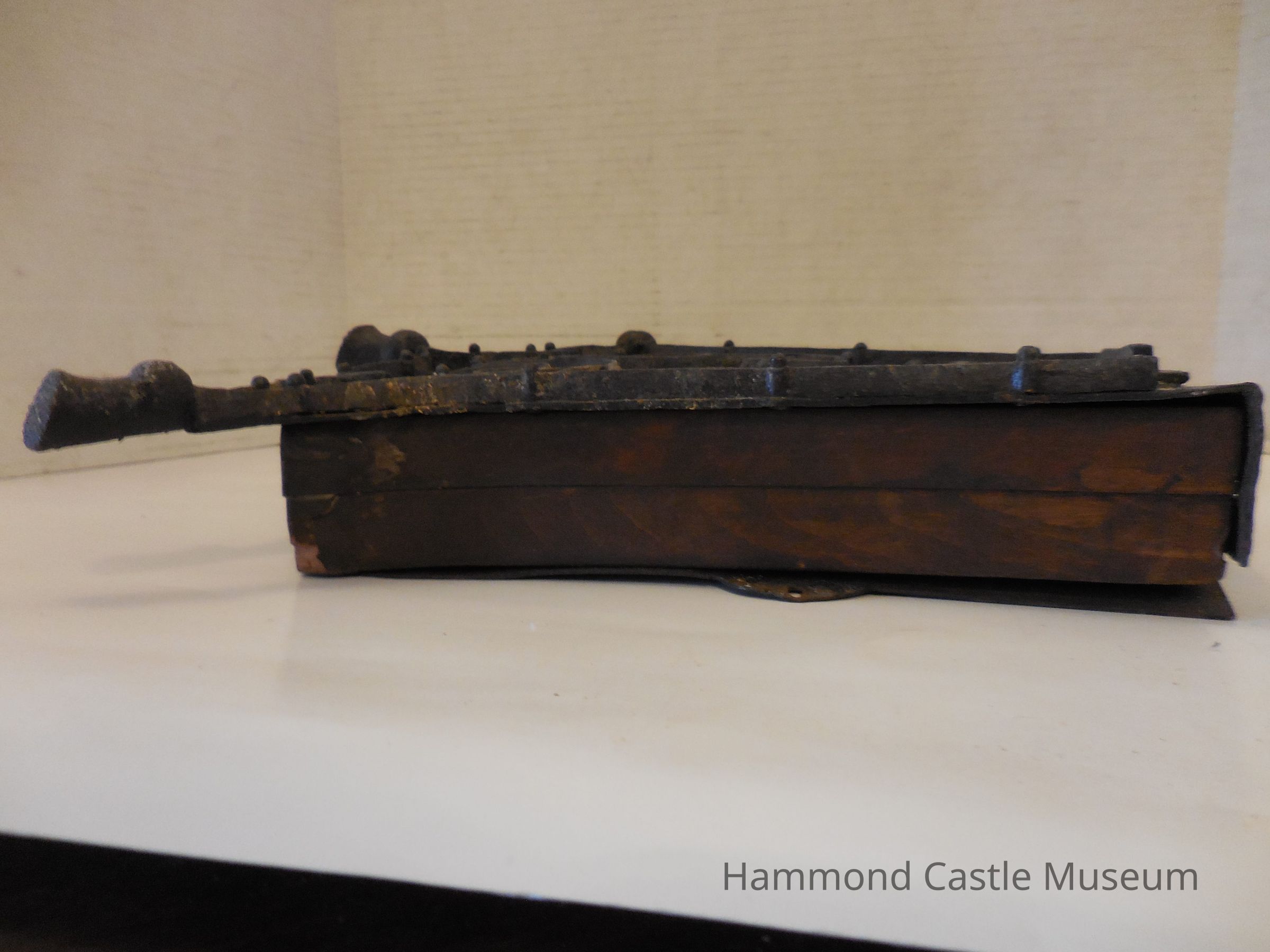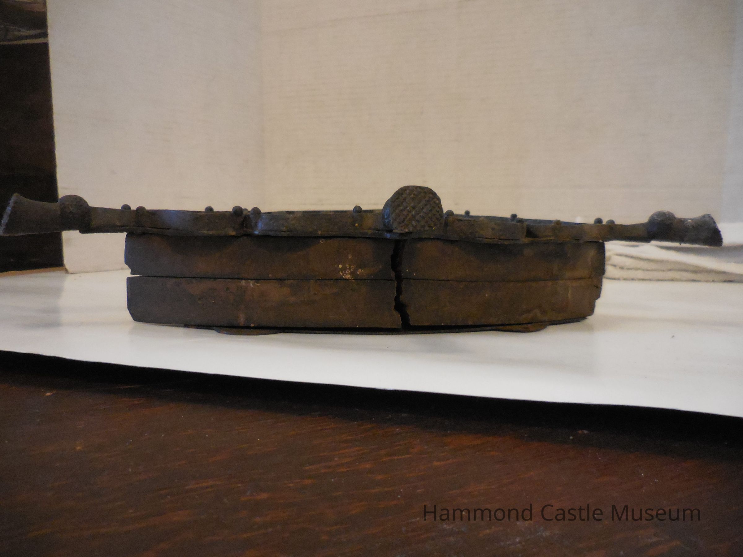 Iron frontispiece, bottom and backing, but middle is made of wood.