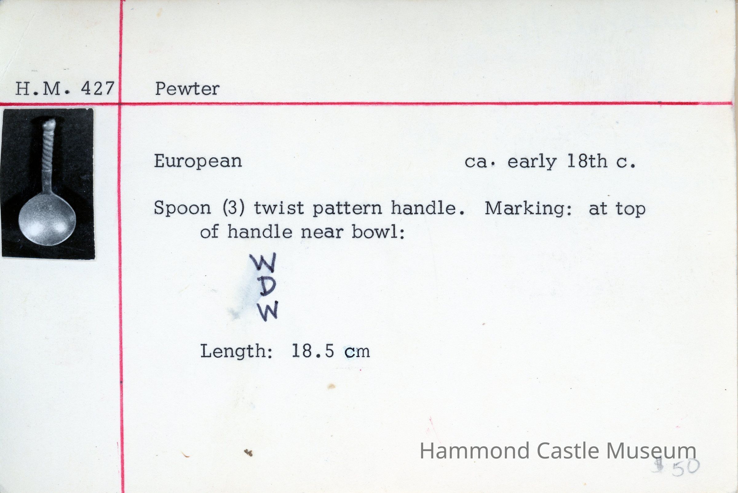 Set of 3 spoons with twist pattern handle. Marking: at top of handle near bowl: see card catalogue.