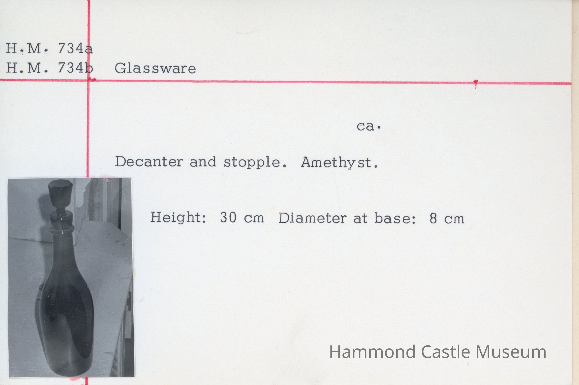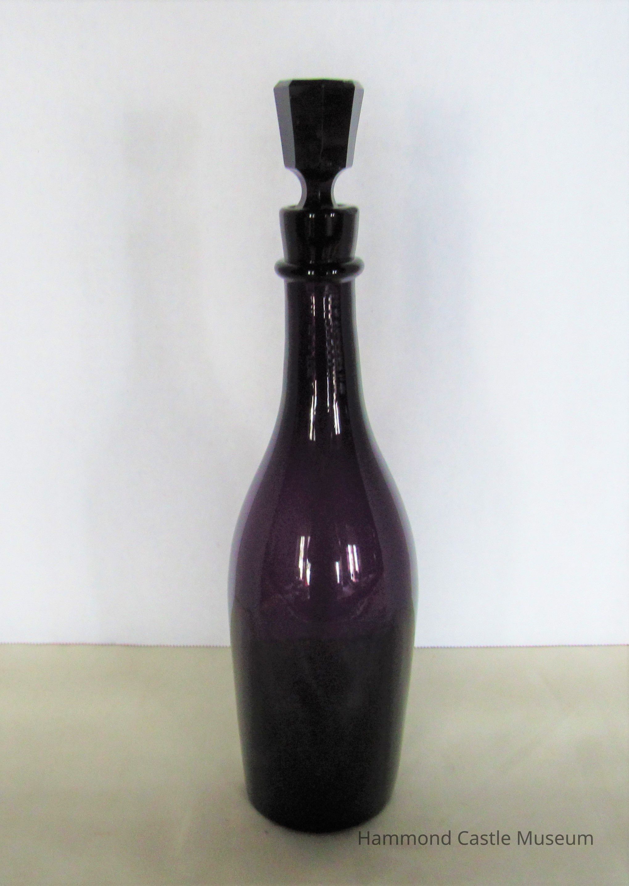 Violet glass decanter (a) with stopper (b).