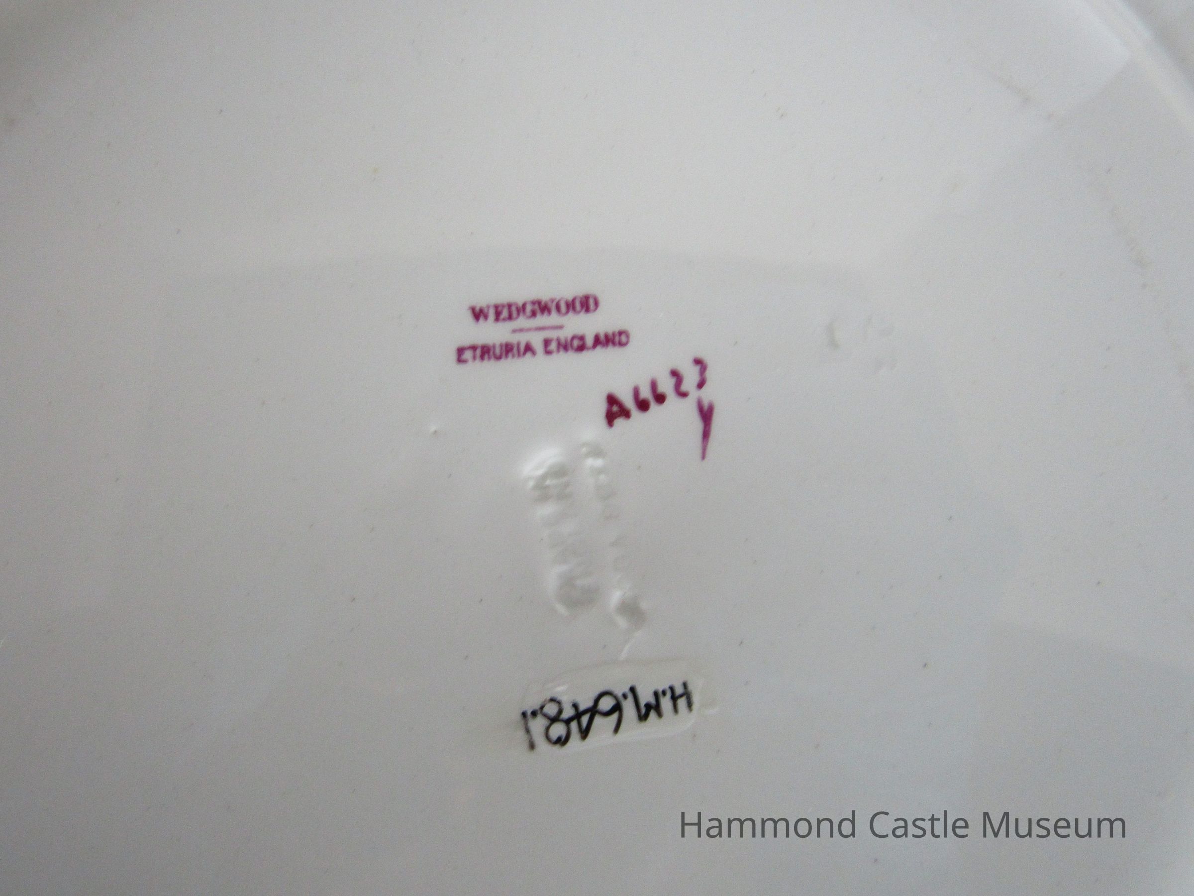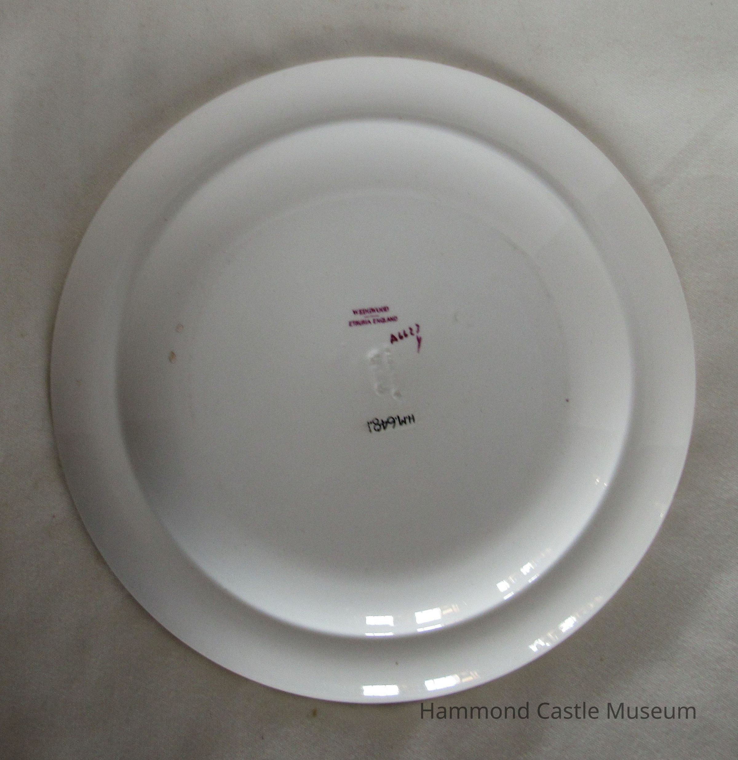 English ceramic plate. Markings: WEDGWOOD, Etruria A6623y L(N over another N)