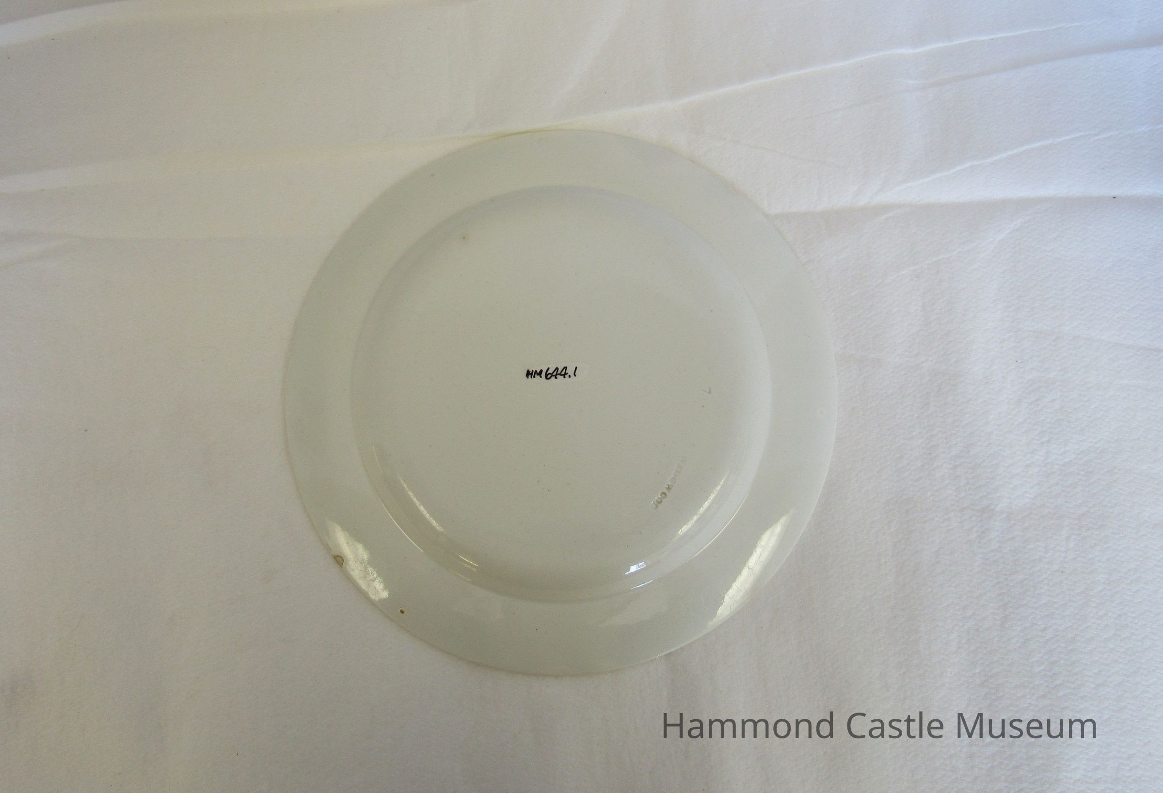 English ceramic plate. Single green line at rim. Marked: WEDGWOOD 7