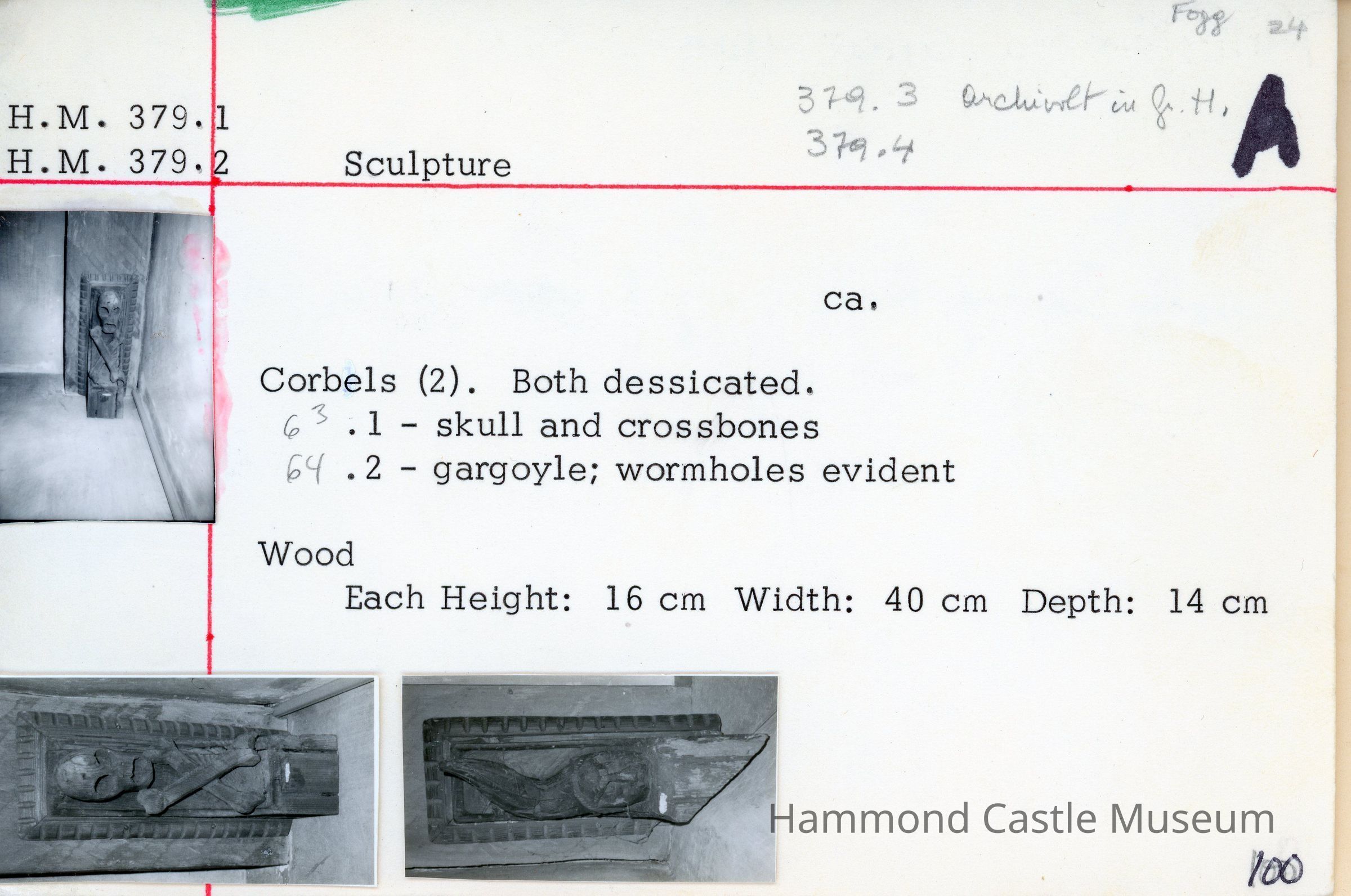 1of 2 corbels in lower entrance hallway 379.1: skull and crossbones Both desiccated.