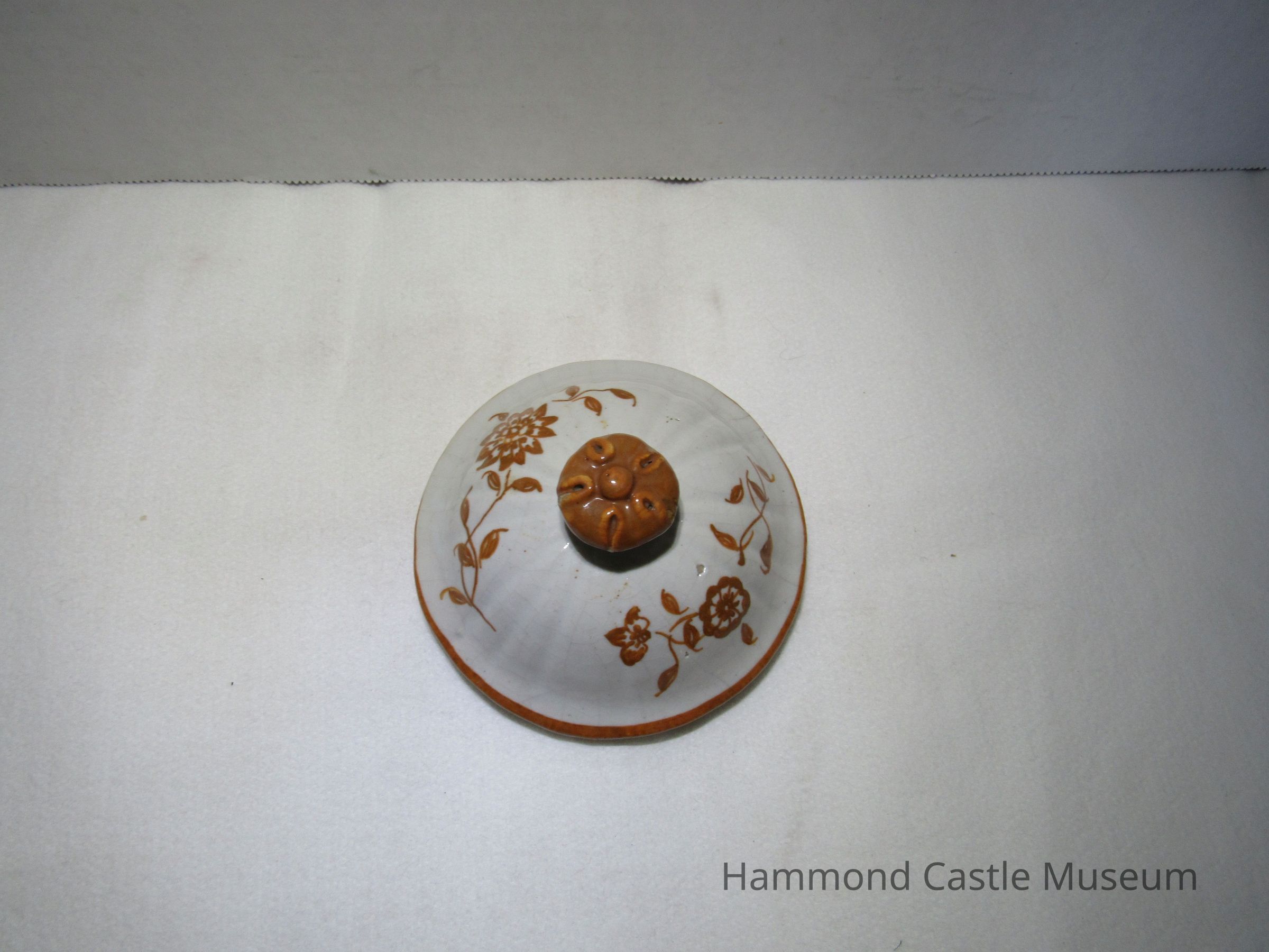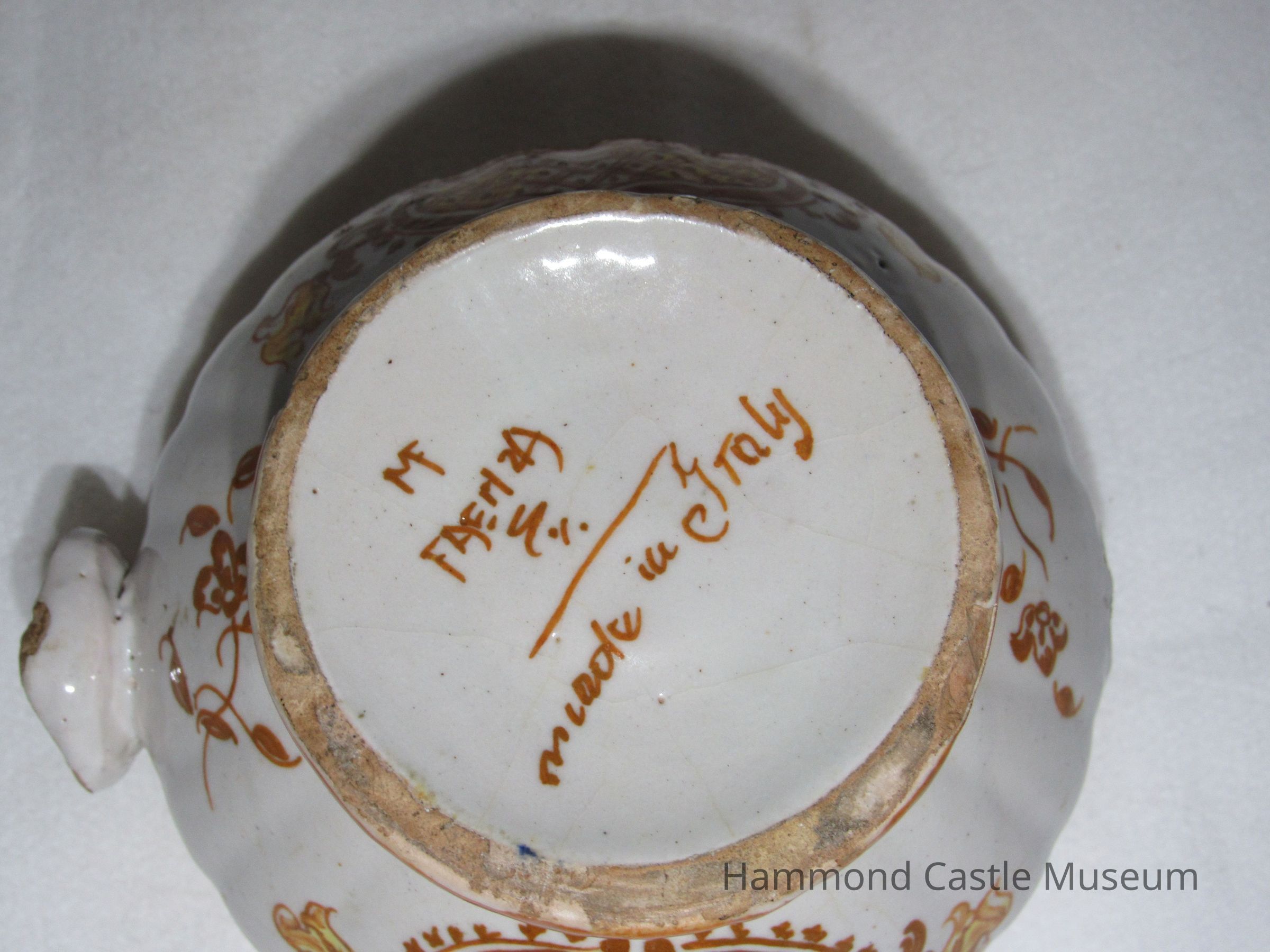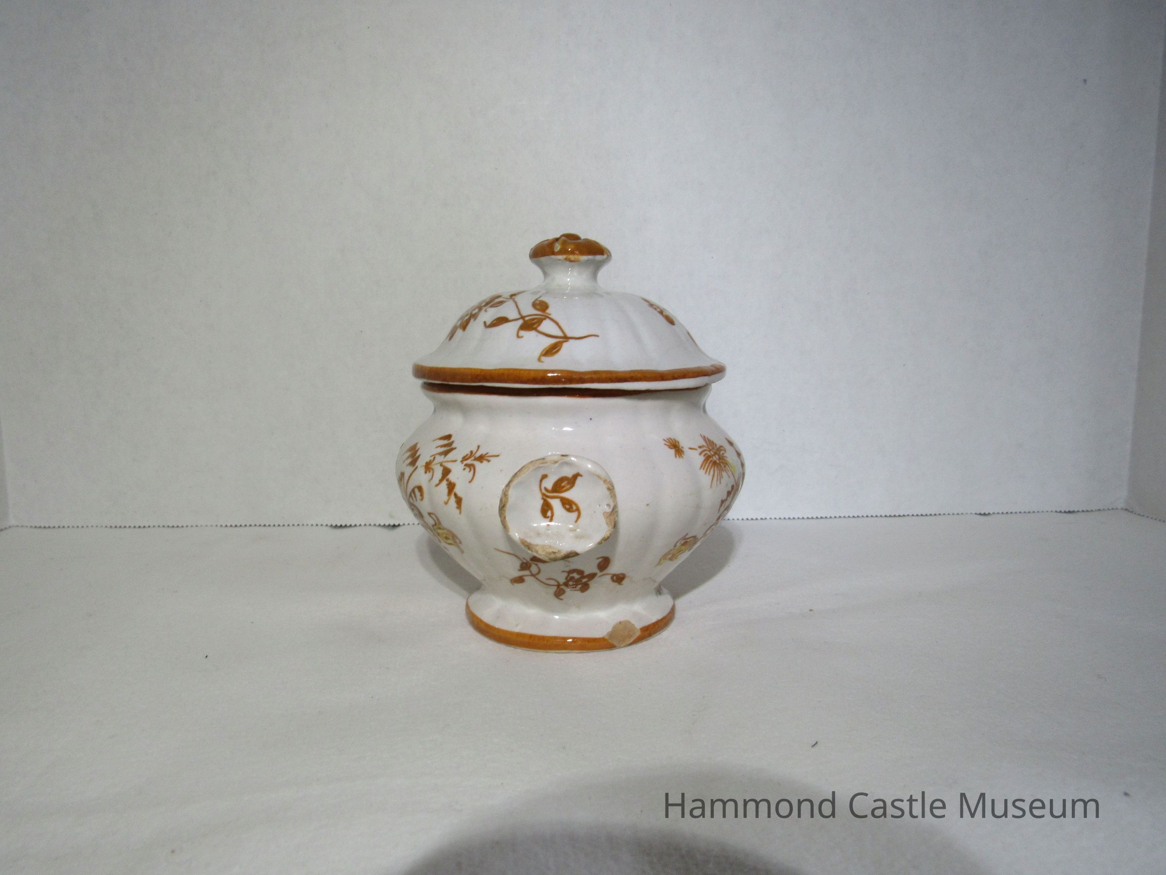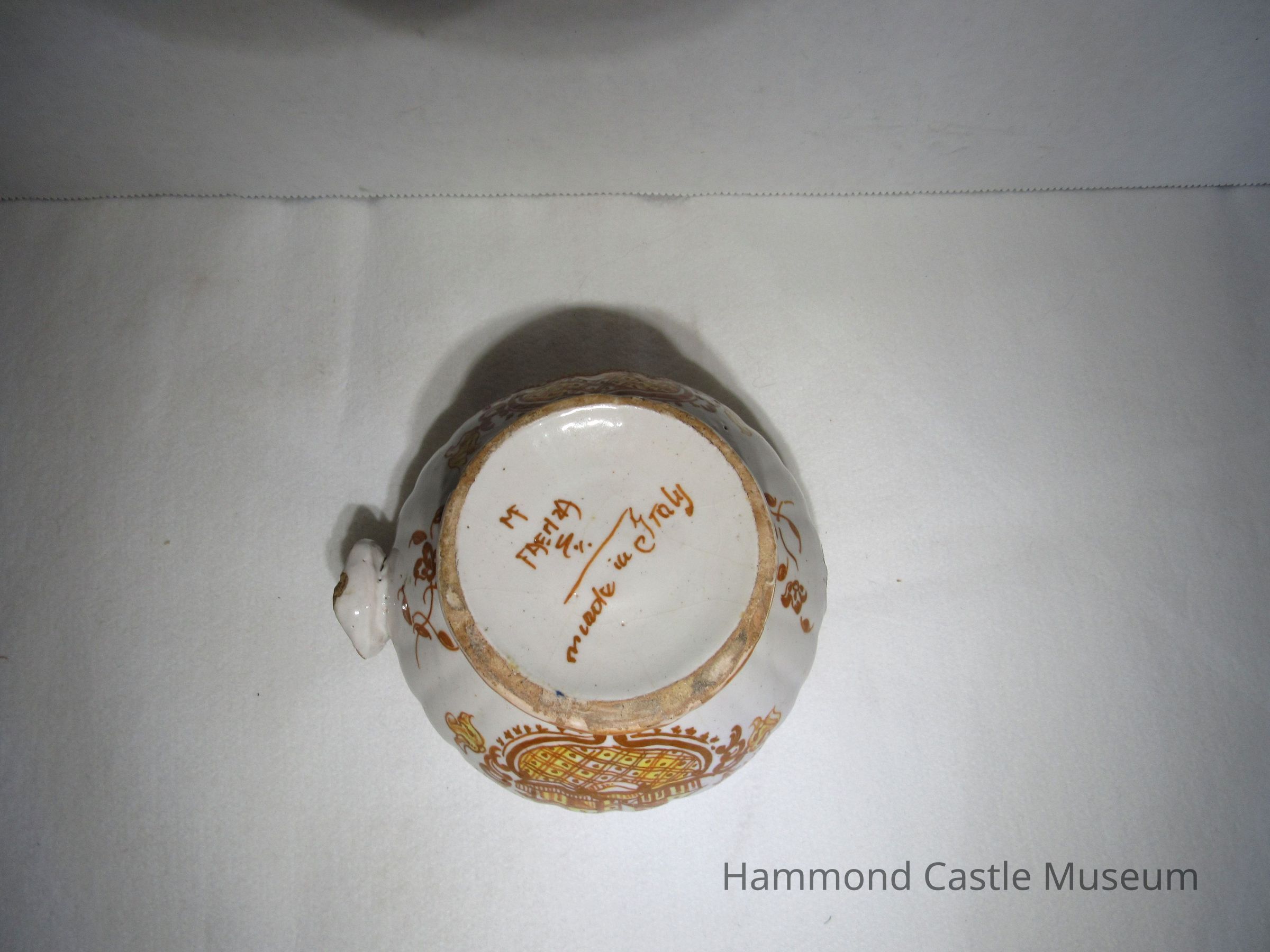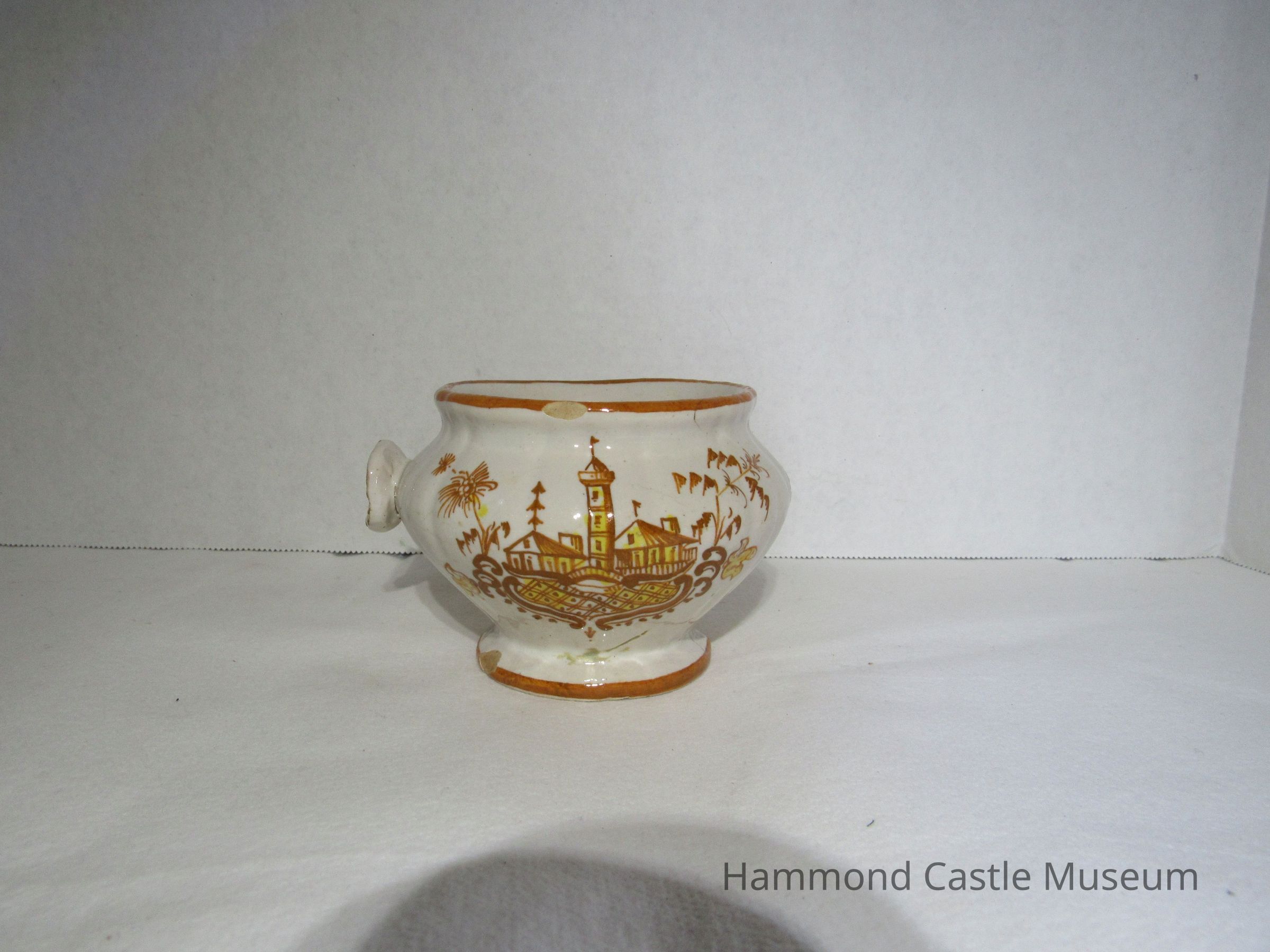 Yellow & Brown Italian Coffee Set - sugar bowl with lid Likely made by The Minardi Brothers of Faenza, Italy & purchased during Hammond's European travels Possibly referred to by Hammond as the "Capo di Monte" set