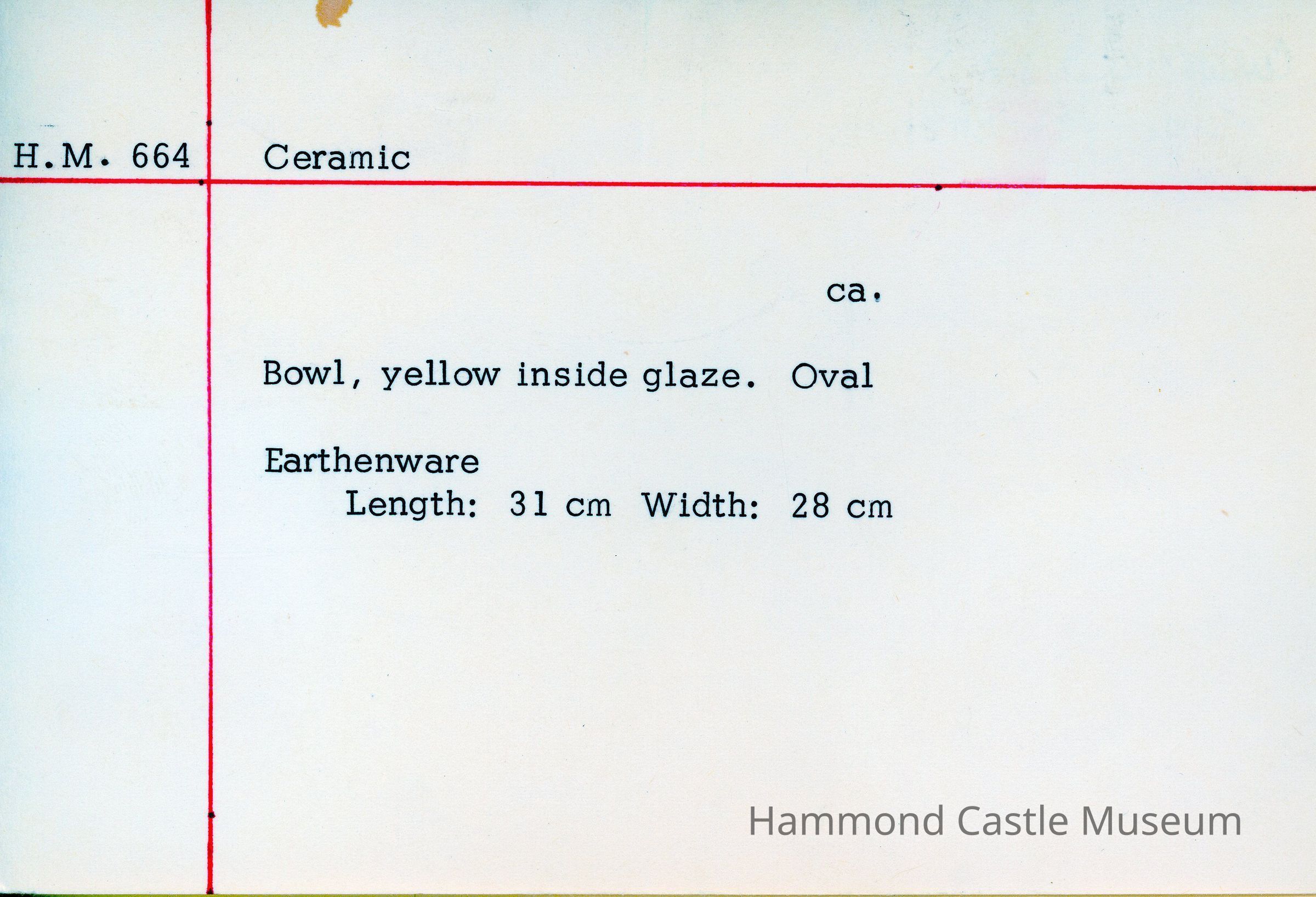 Earthenware bowl. Yellow inside glaze. Oval.