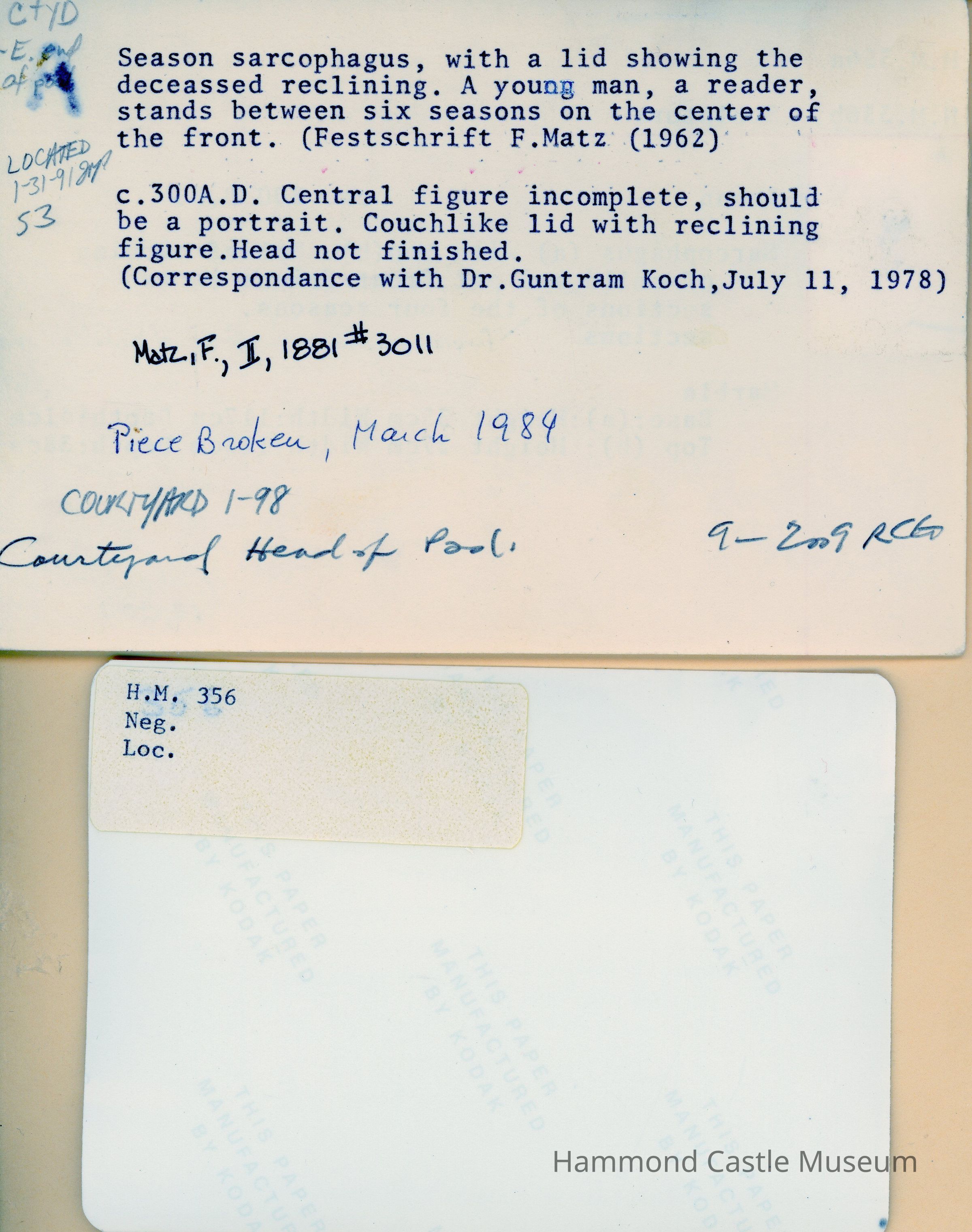 HM356 a&b Season Sarcophagus (1984 condition report, vandalism)Note Type