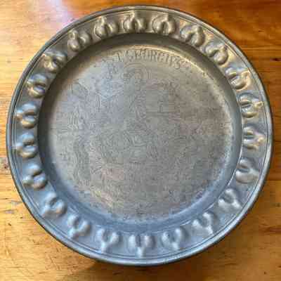 16th c. French Plaque - Knights with Weapons & Dogs