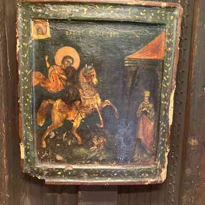 13th c Russian icon of St Dionysius with 12 bordering scenes