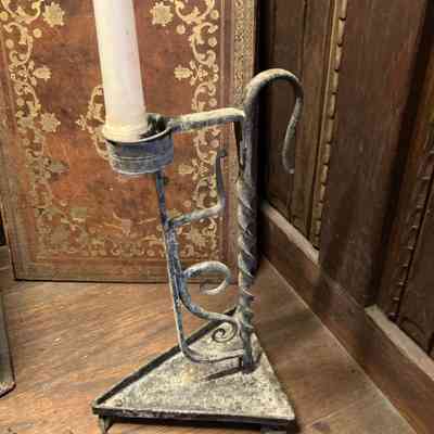 15thc French Gothic Candelabrum with 3 feet & 2 holders, set of 4