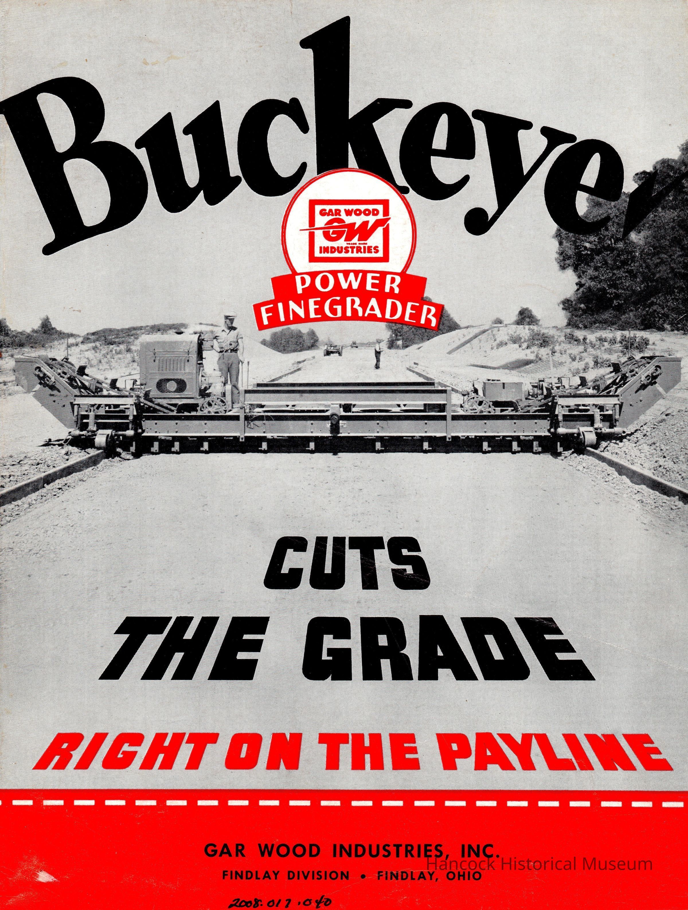 Gar Wood Industries, 200 Crystal Ave, Findlay, Oh, sales brochure for Buckeye Power Finegrader.Collection