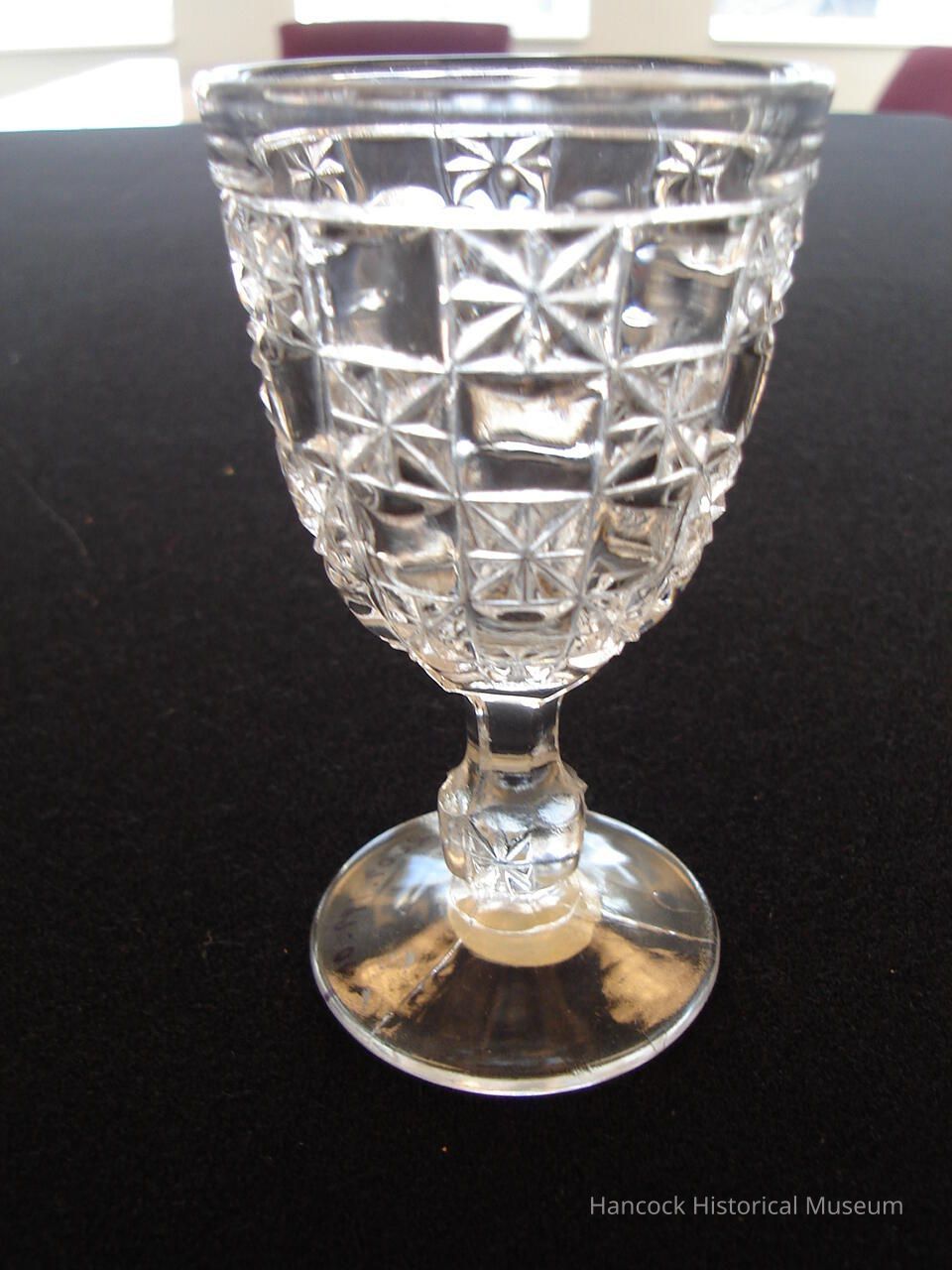 Clear Glass cordial glass Log & Star pattern by the Bellaire Goblet Company, Findlay, Oh