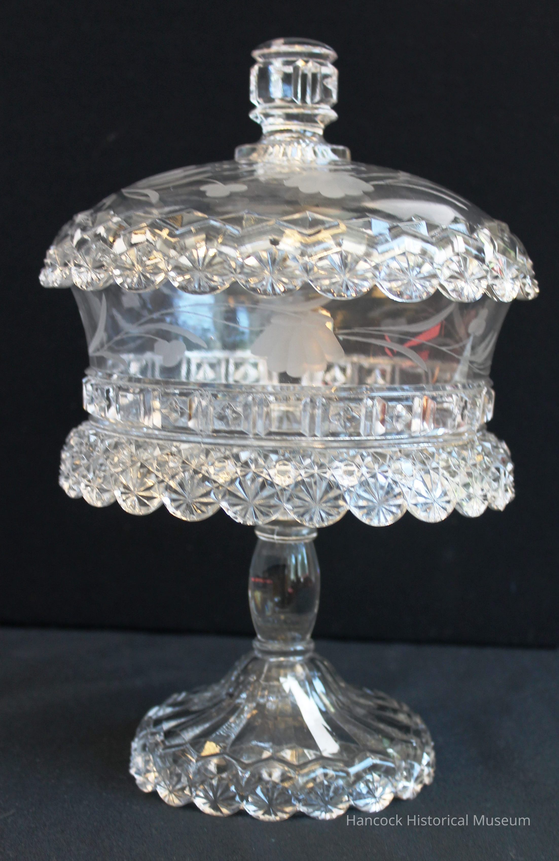 Starred Block covered pedestal candy dish from Dalzell, Gilmore & Leighton, Findlay, OH
