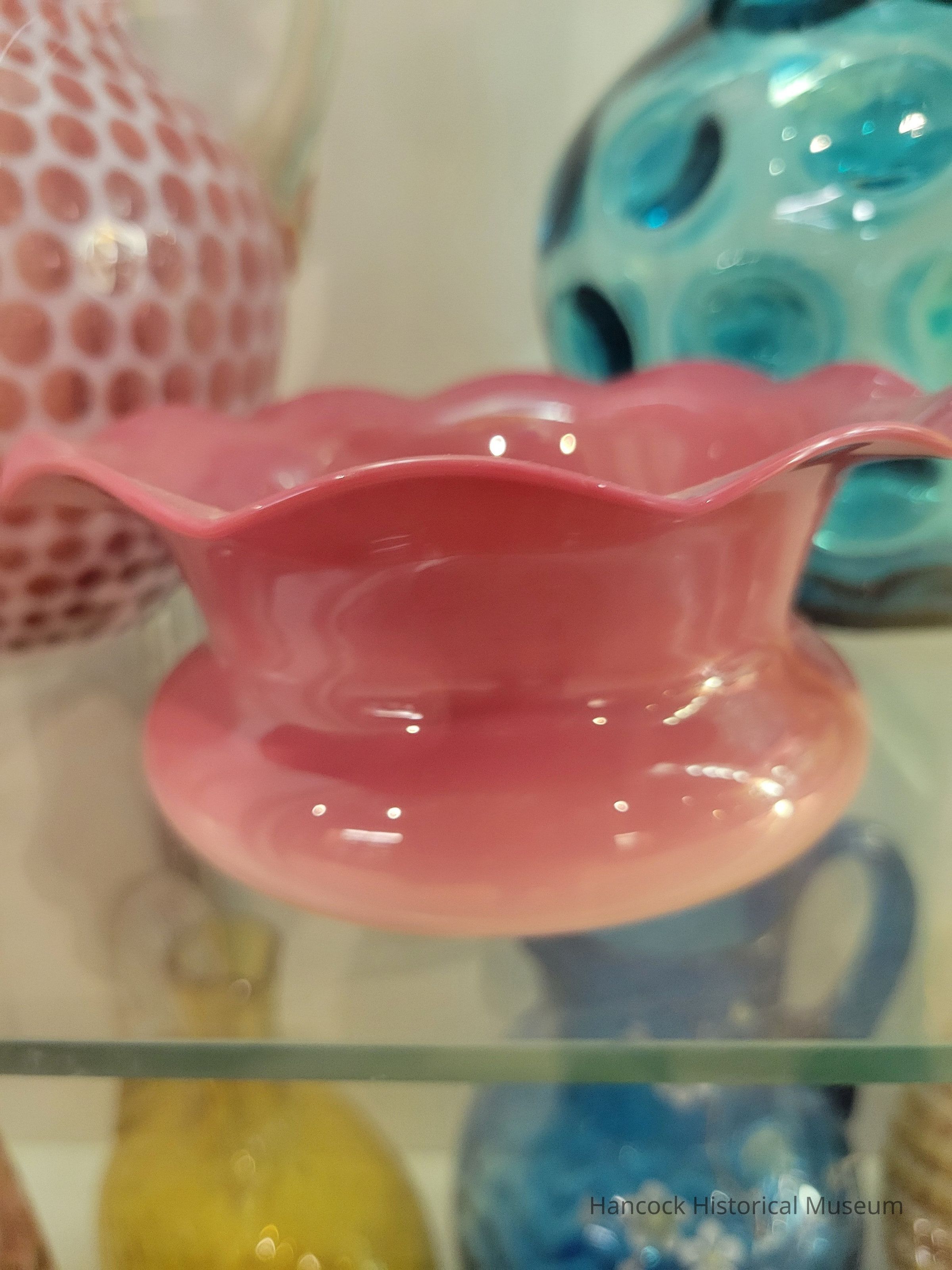 Glass finger bowl New England peachblow.