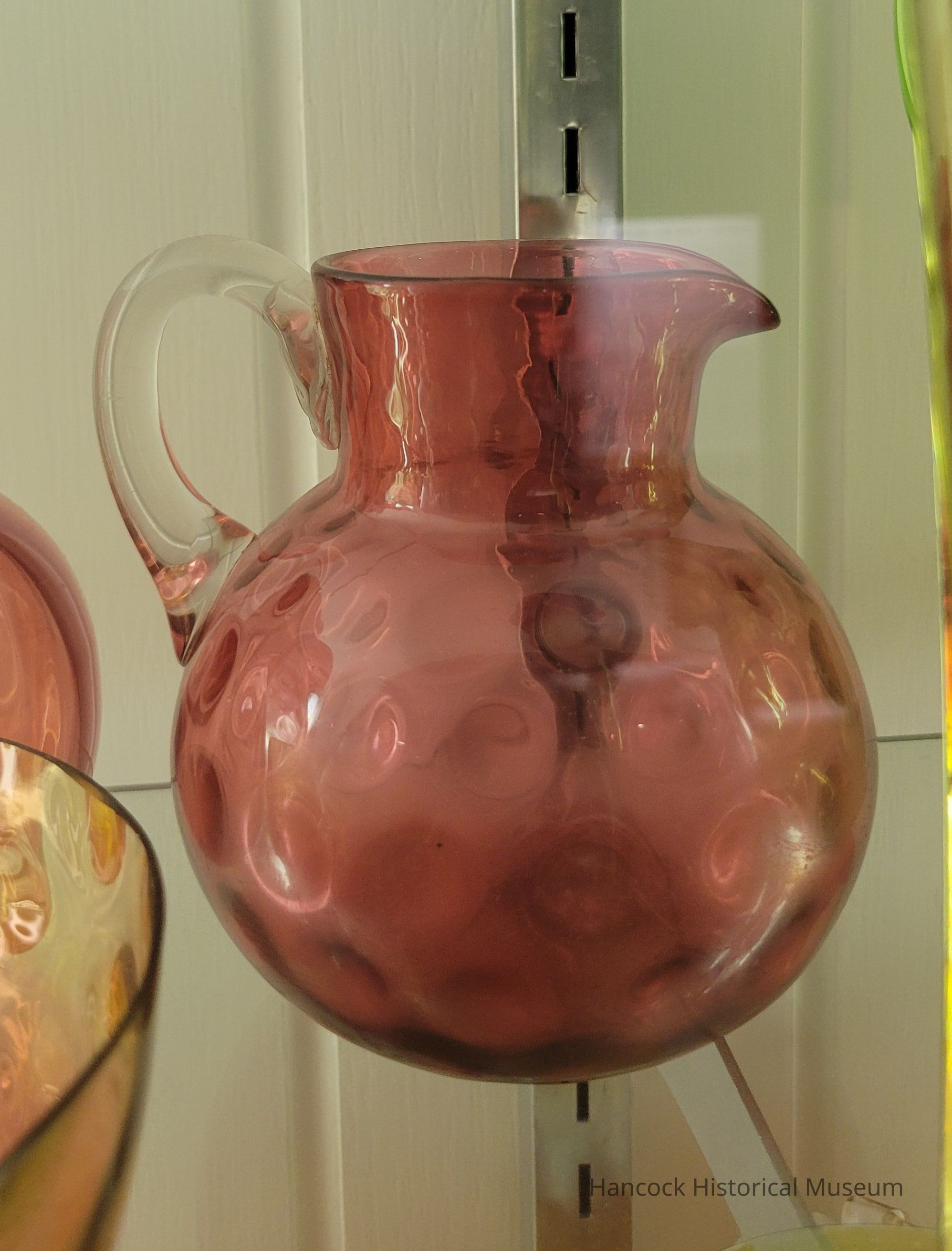 Glass pitcher inverted thumbprint cranberry.