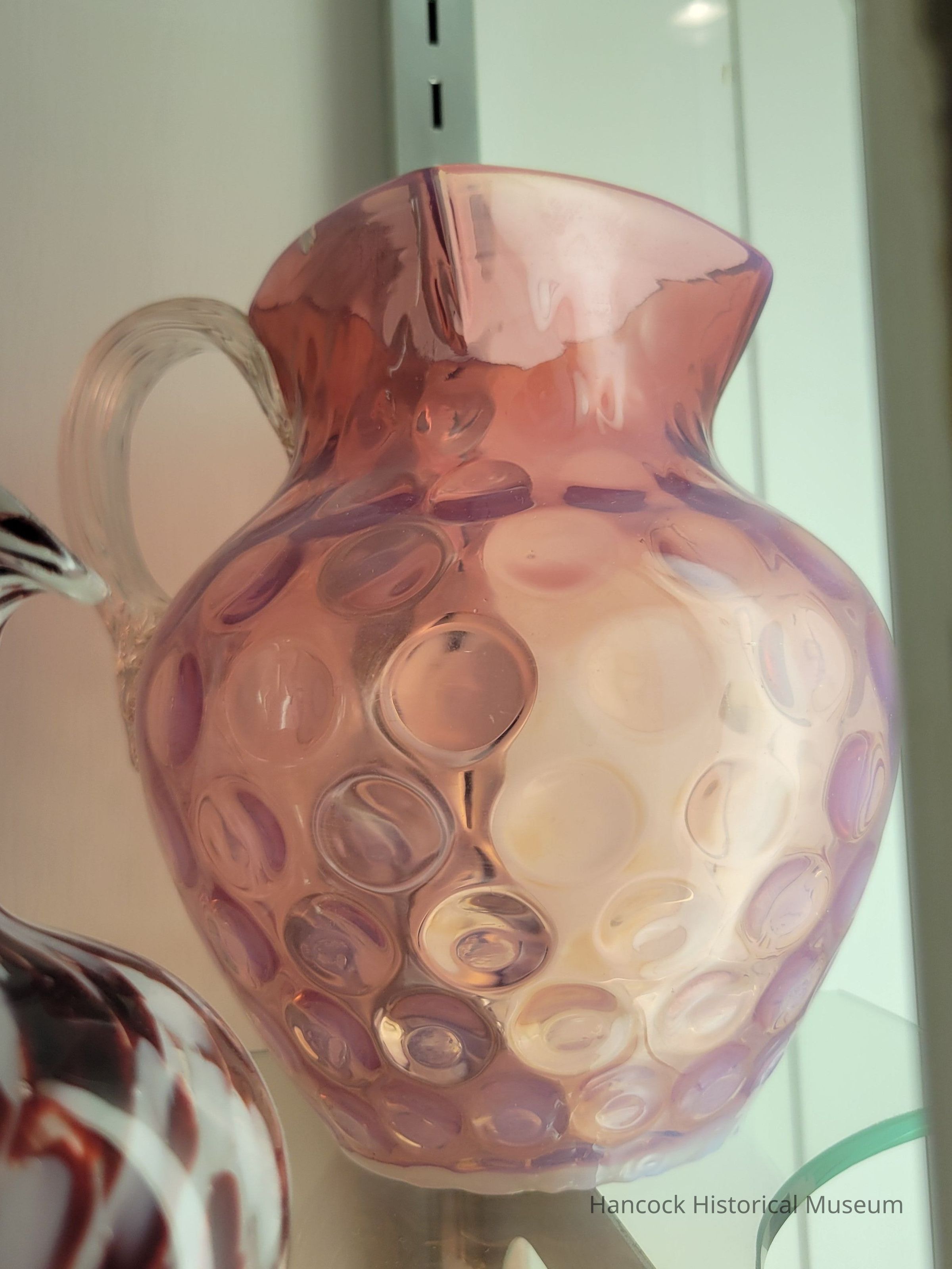 Glass pitcher inverted thumbprint, cranberry.