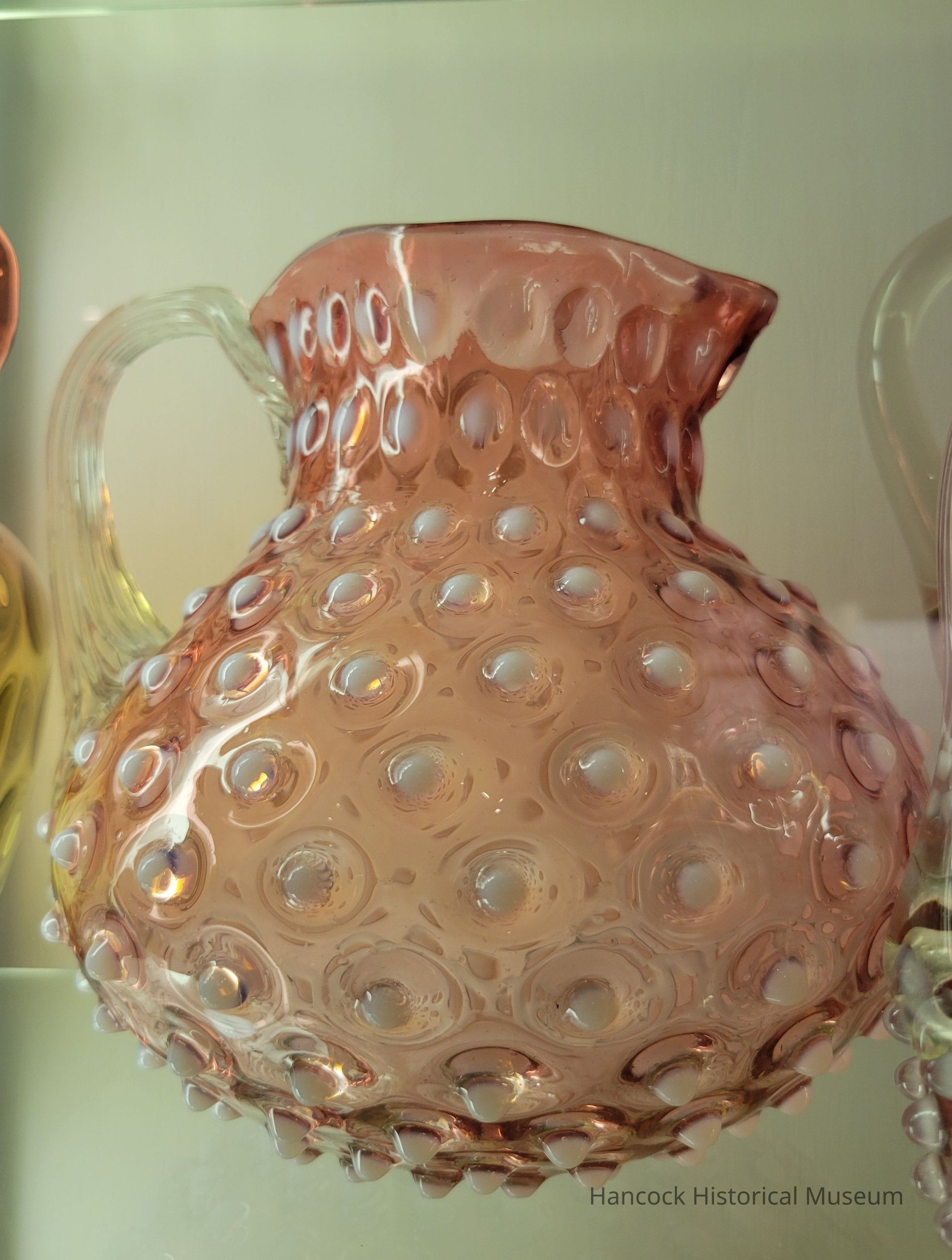 Glass pitcher Hobnail, cranberry opalescent.