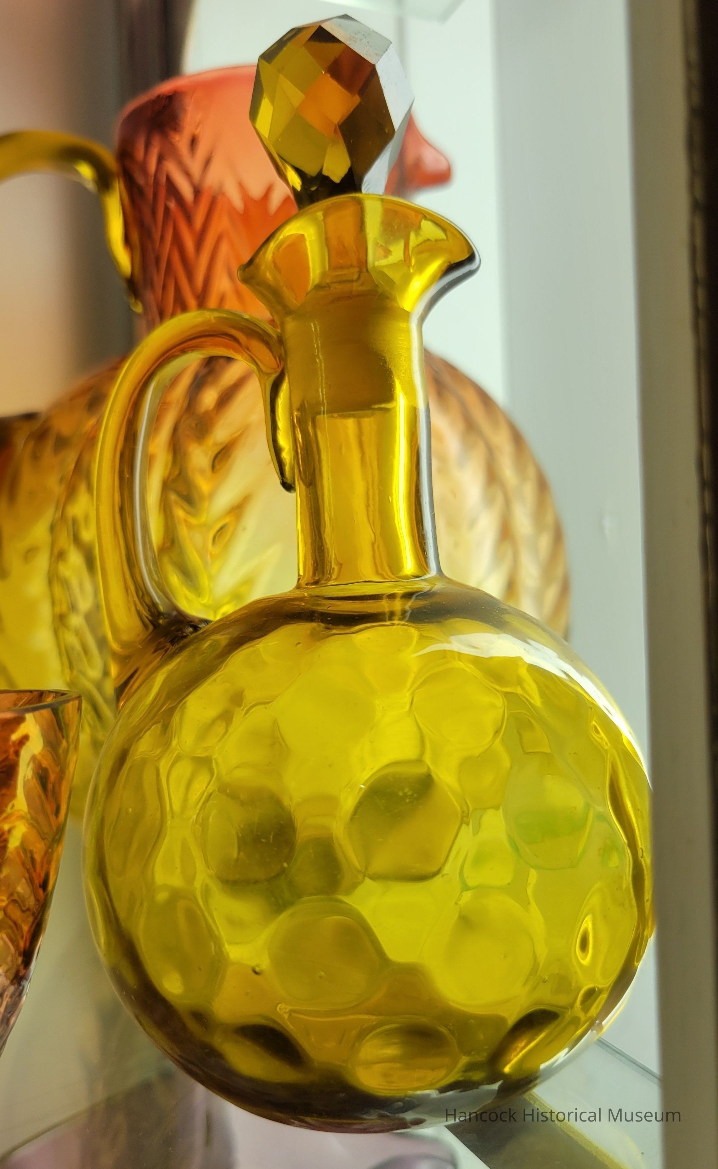 Glass cruet inverted thumbprint, amber