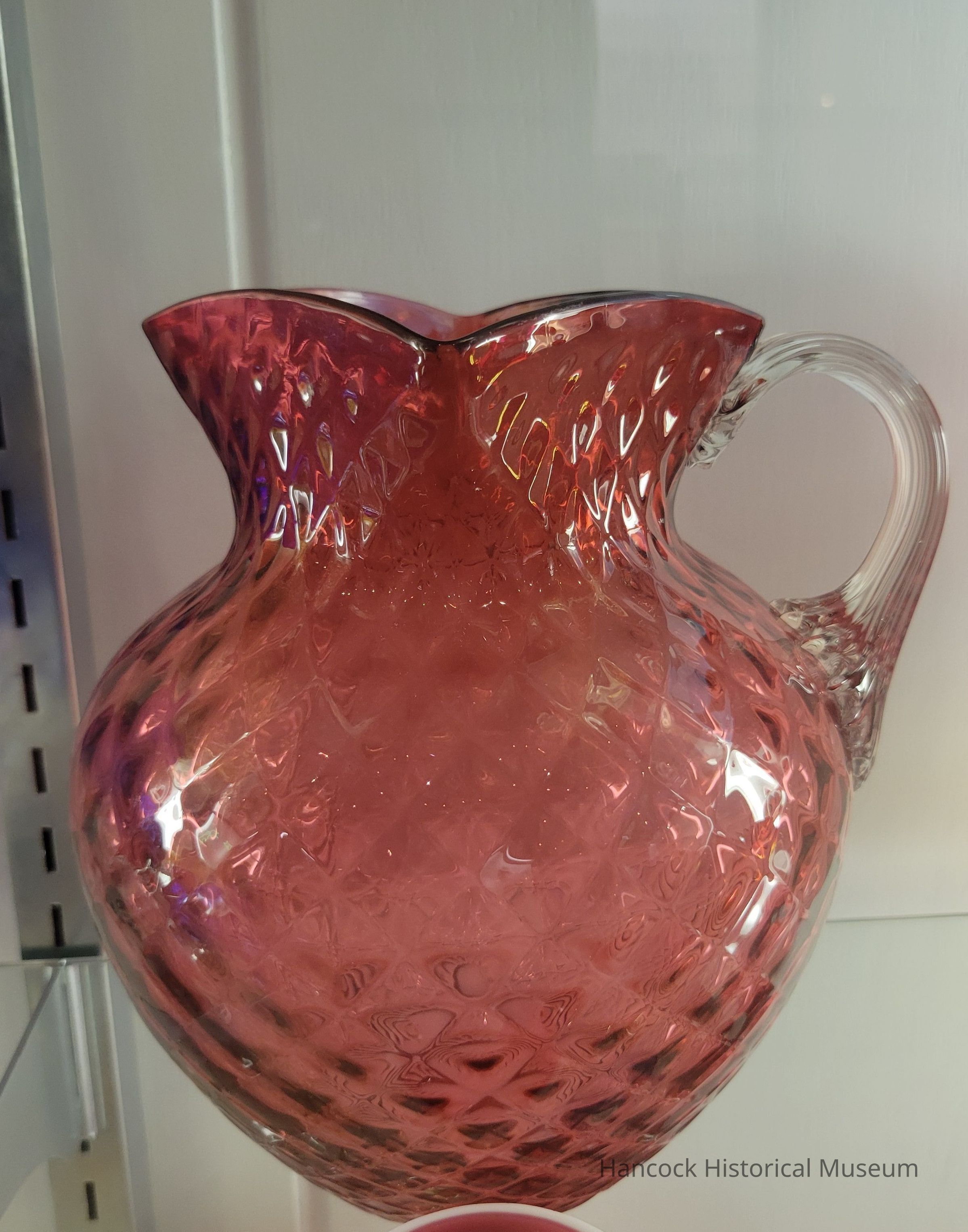 Glass pitcher diamond quilted pattern, cranberry.