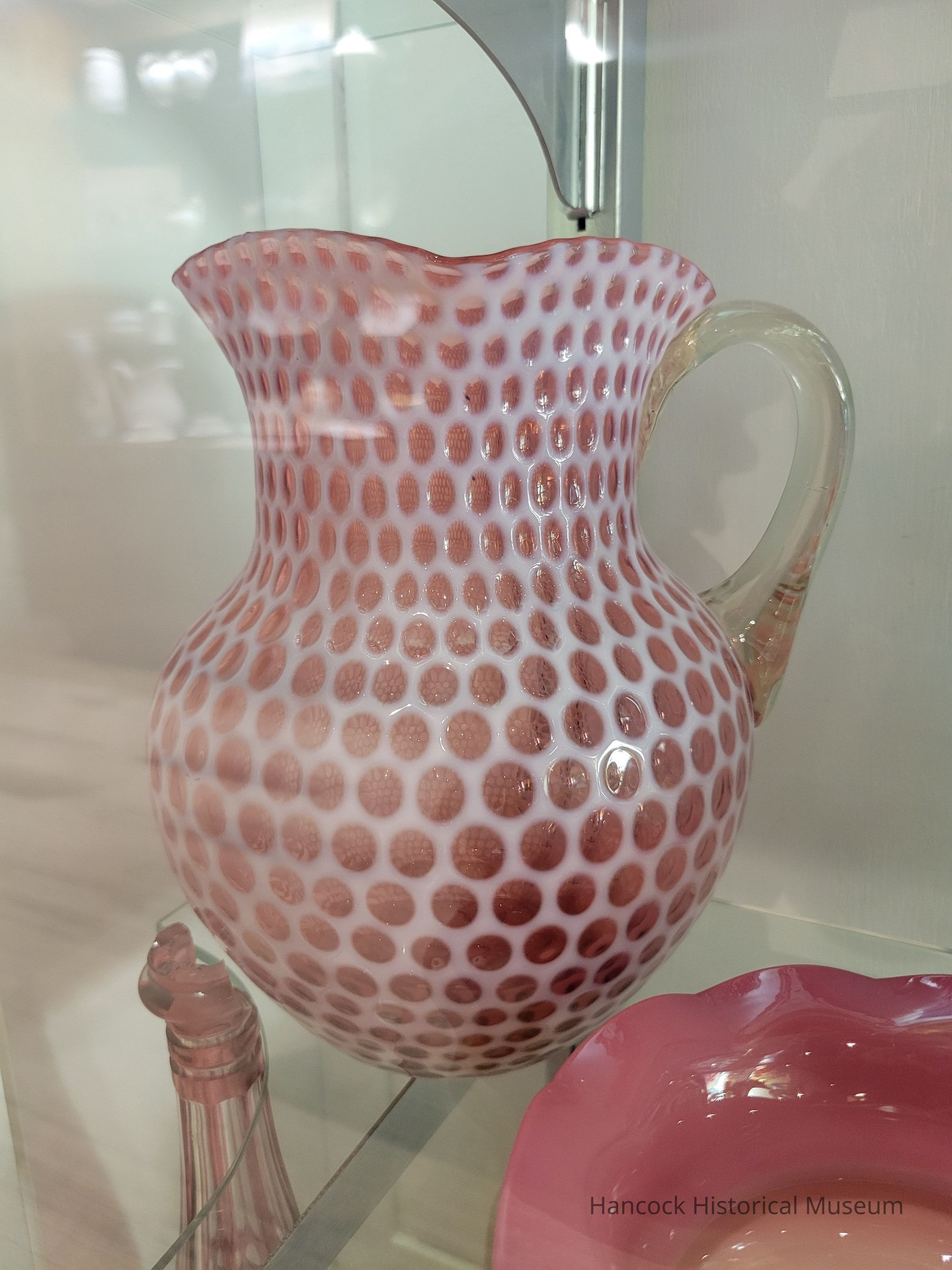 Glass pitcher honeycomb pattern, cranberry opalescent.