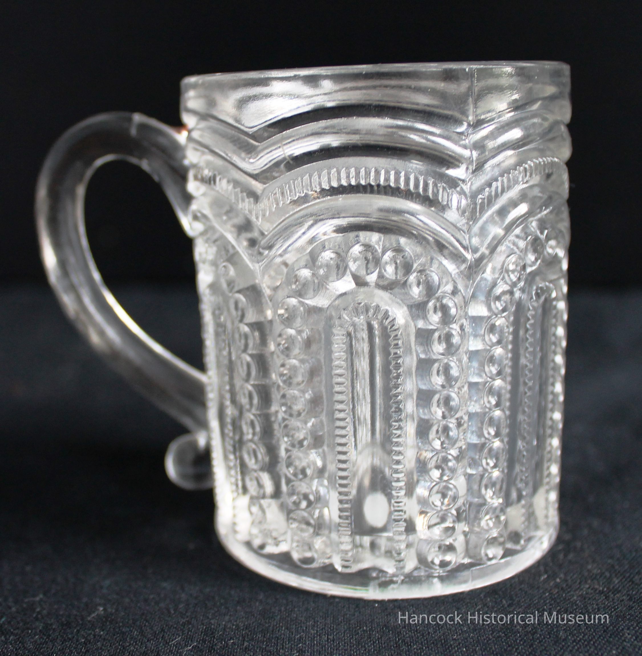 3 x 3 1/2" Inverted Hobnail arched Mug by Dalzell Gilmore Glass Co, Findlay, Oh clear glass.Collection
