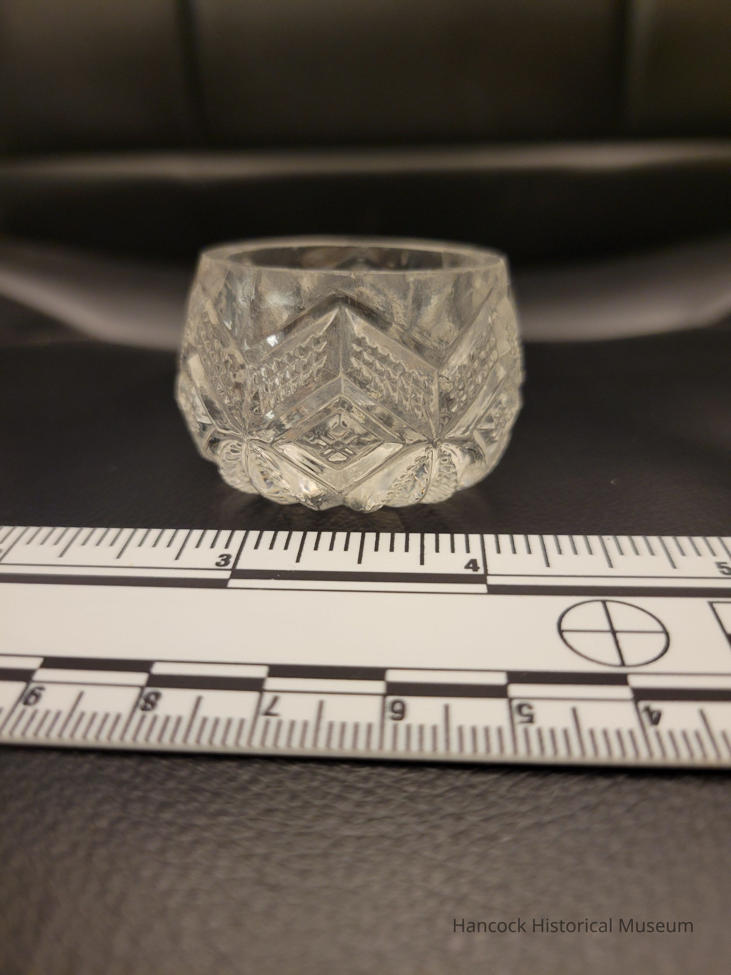 1 1/2" clear glass Ivanhoe pattern Salt Dish by Dalzell Gilmore Glass Co, Findlay, Oh