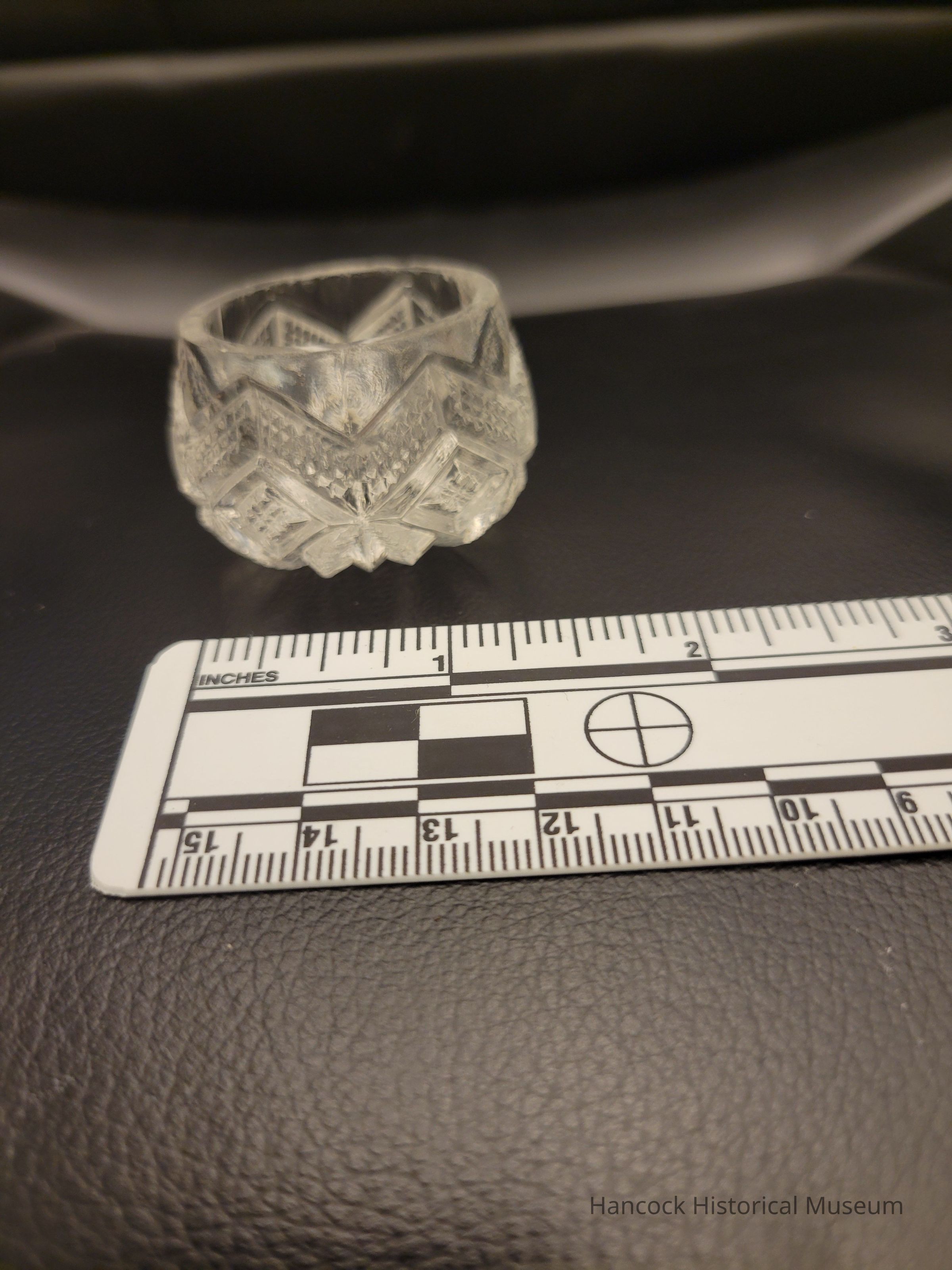 2 x 1/2" clear glass Salt Dish in Ivanhoe pattern, By Dalzell Gilmore Glass Co, Findlay, Oh.