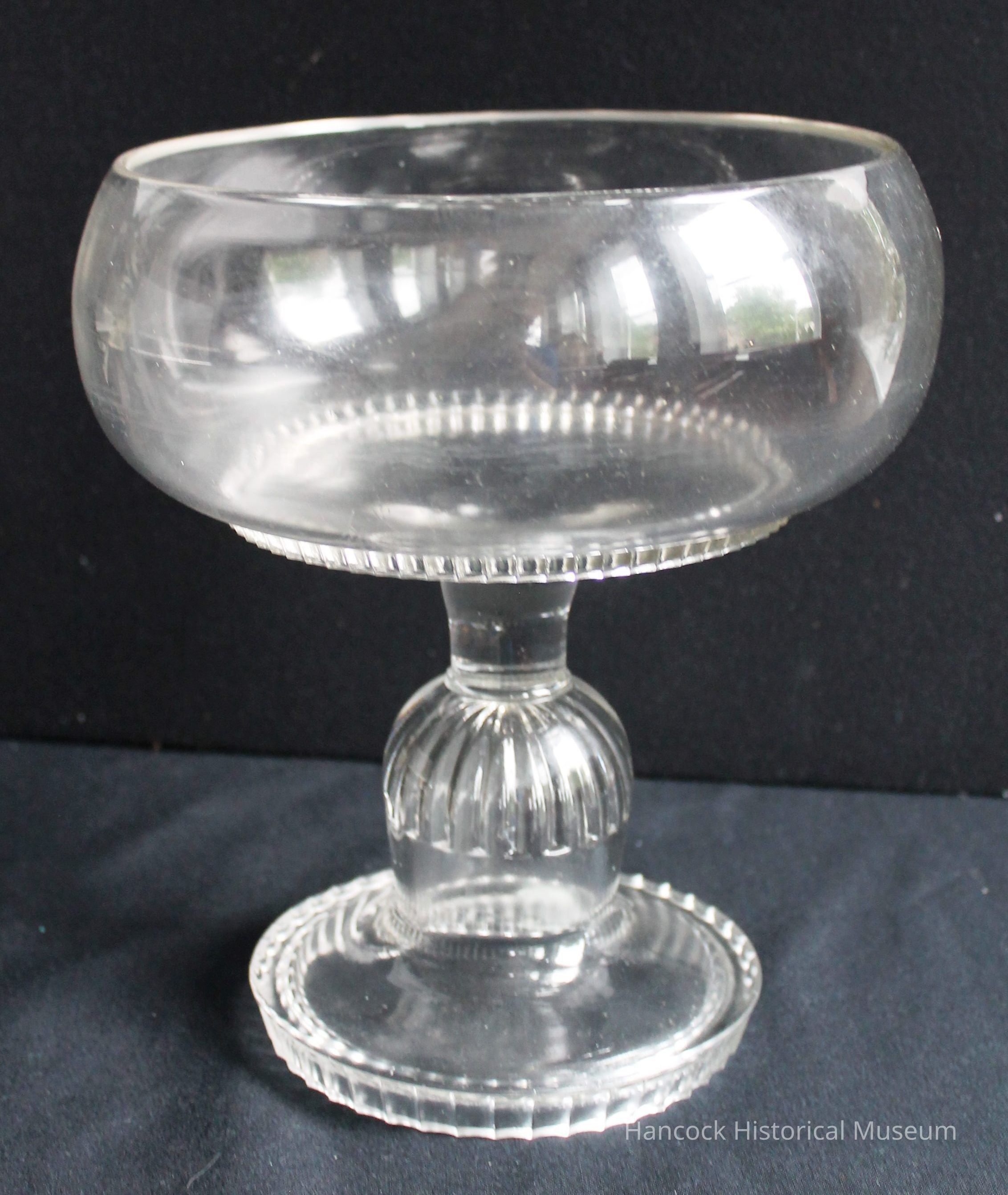 5 x 8 x 9 clear glass Delos pattern Compote by Dalzell Gilmore Glass Co, Findlay, Oh.