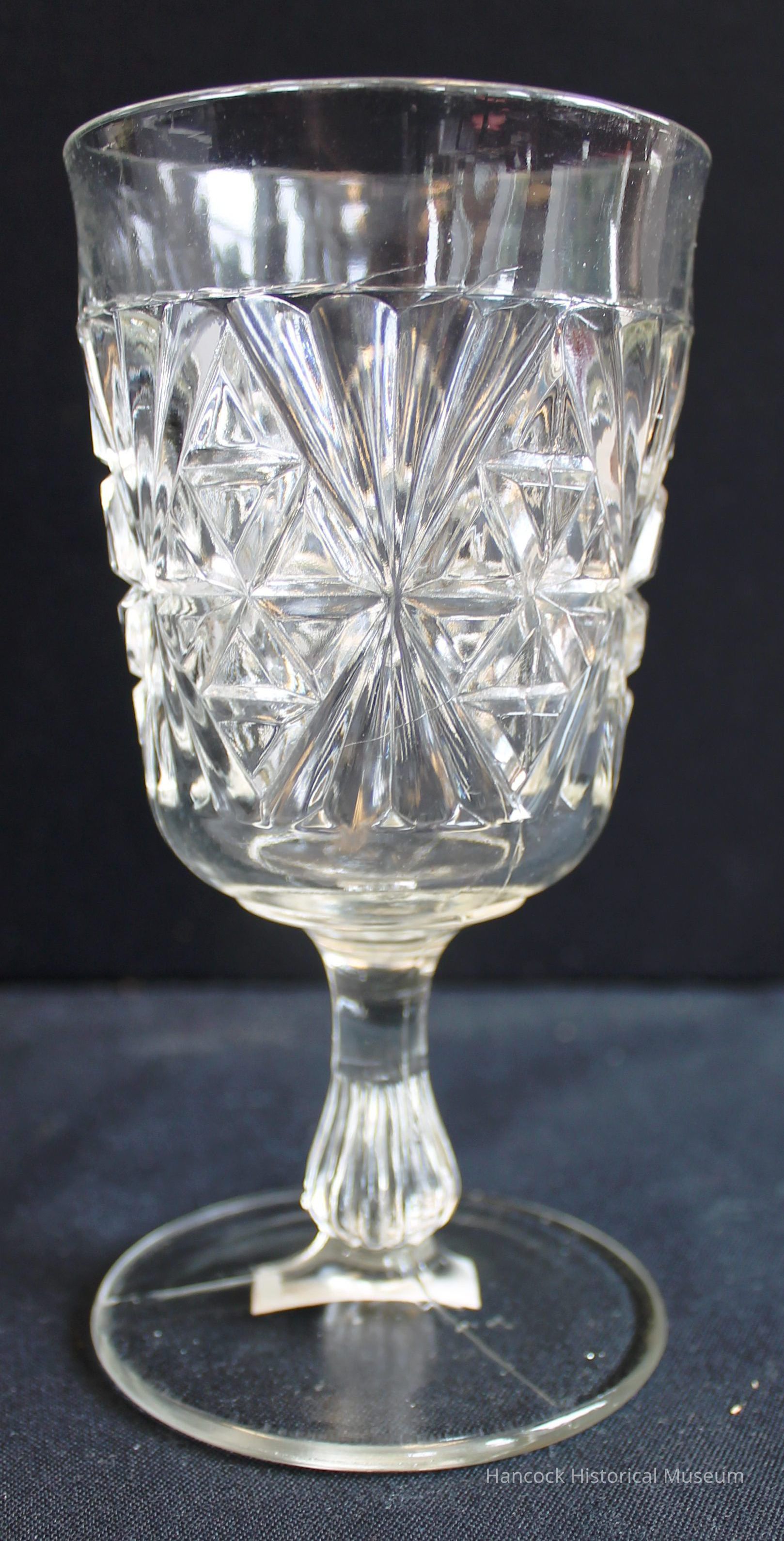 6" tall Triangles & Flute Fan Pattern goblet from Bellaire Goblet Co, Findlay, Oh.