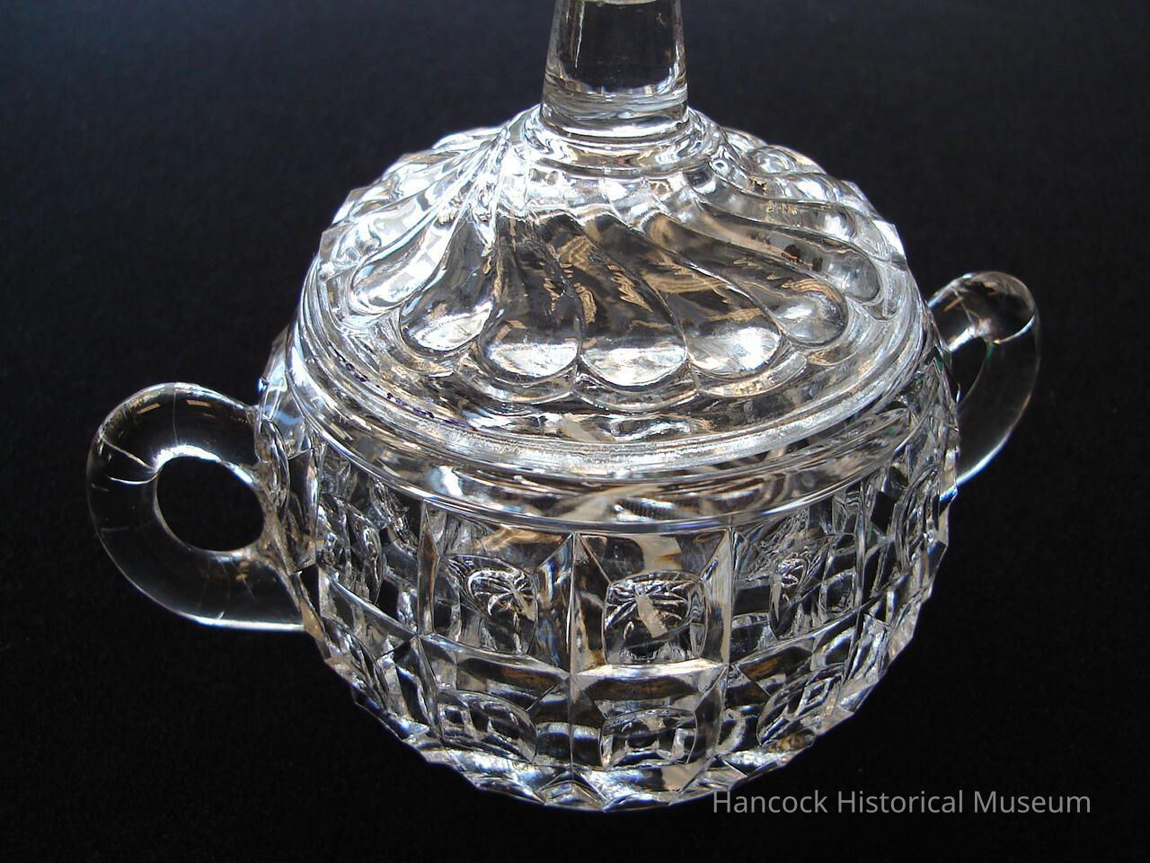Clear Glass sugar bowl w/o Lid Thumbprint & Block pattern Dalzell Gilmore & Leighton Glass Co, Findlay, Oh.Collection