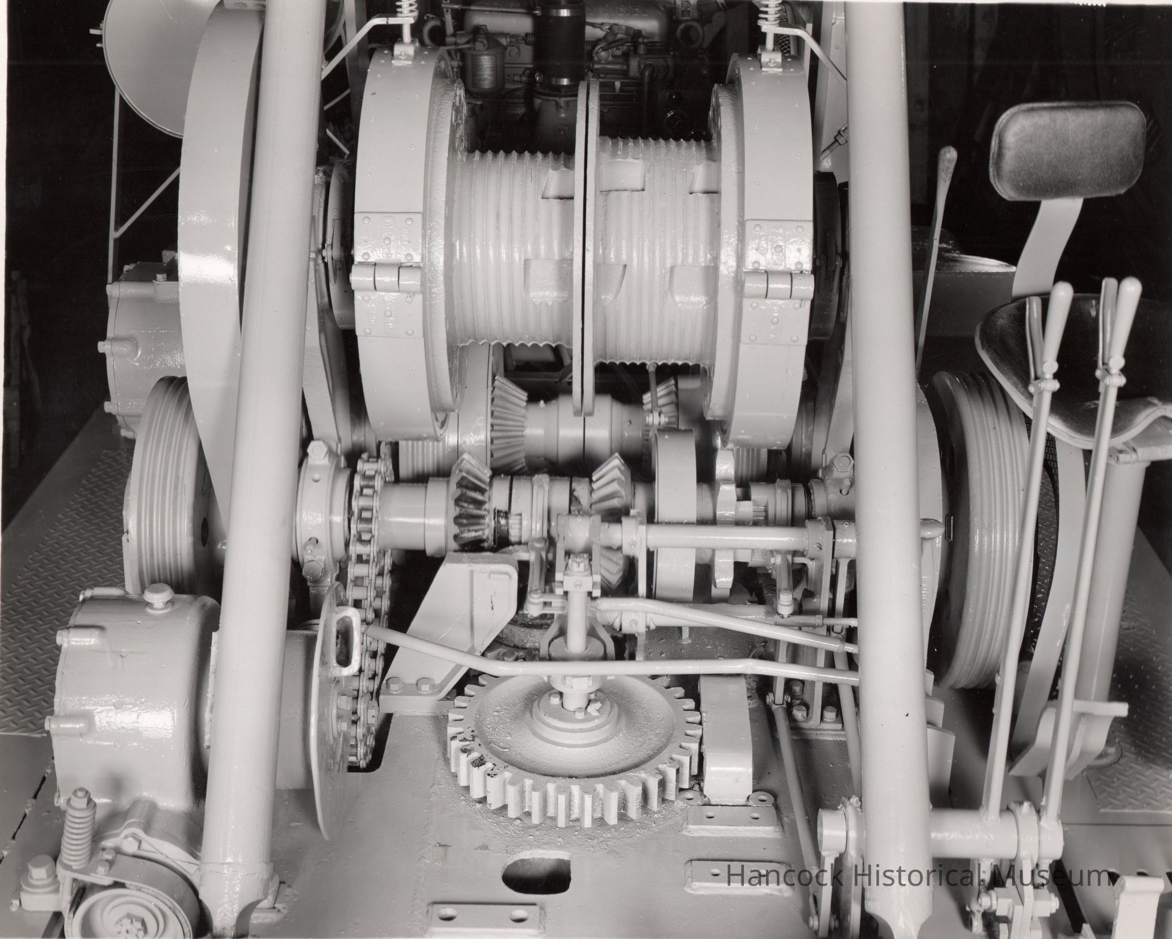 8 x 1 b/w photo of gears of a ditching machine inside Buckeye Traction Ditcher Co, 200 Crystal Ave, Findlay, Oh undated.